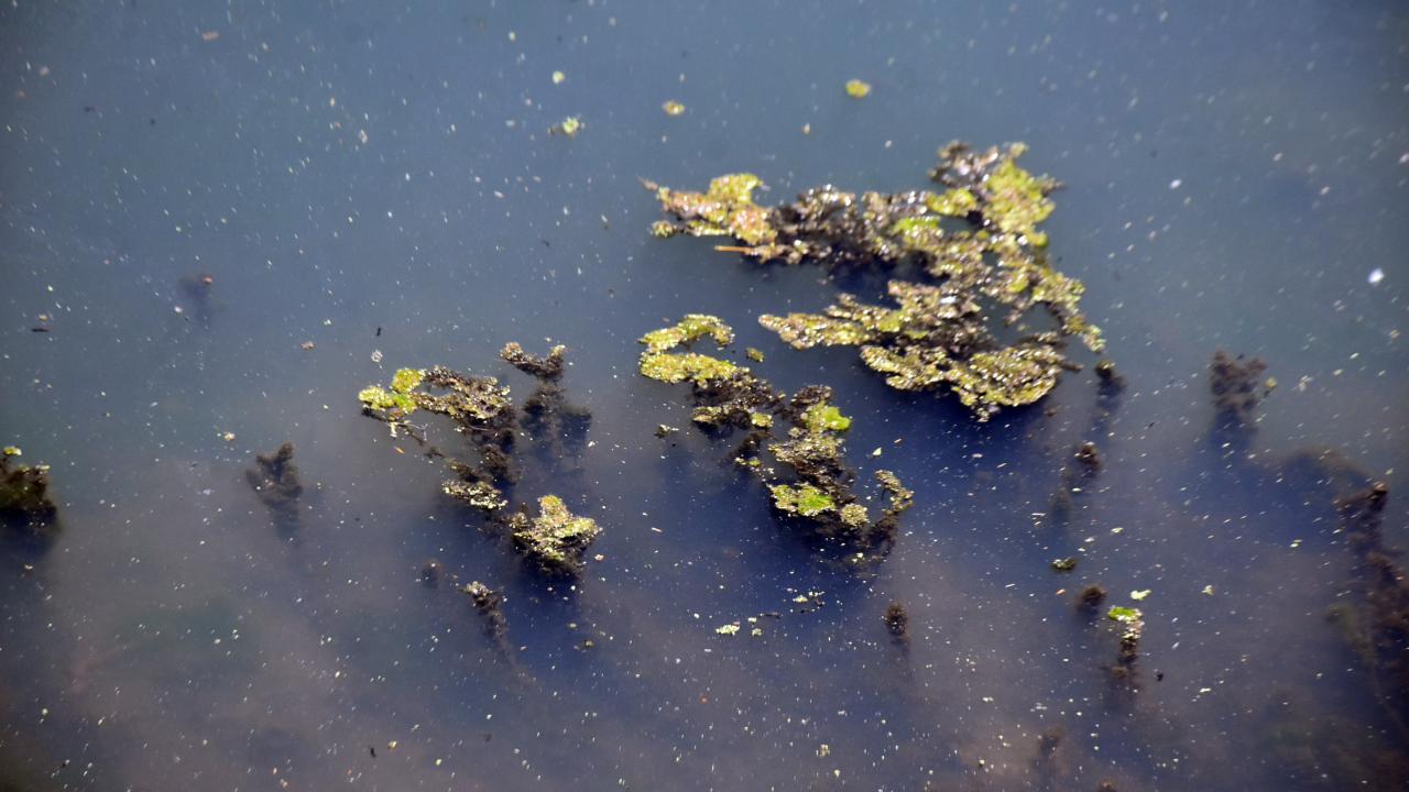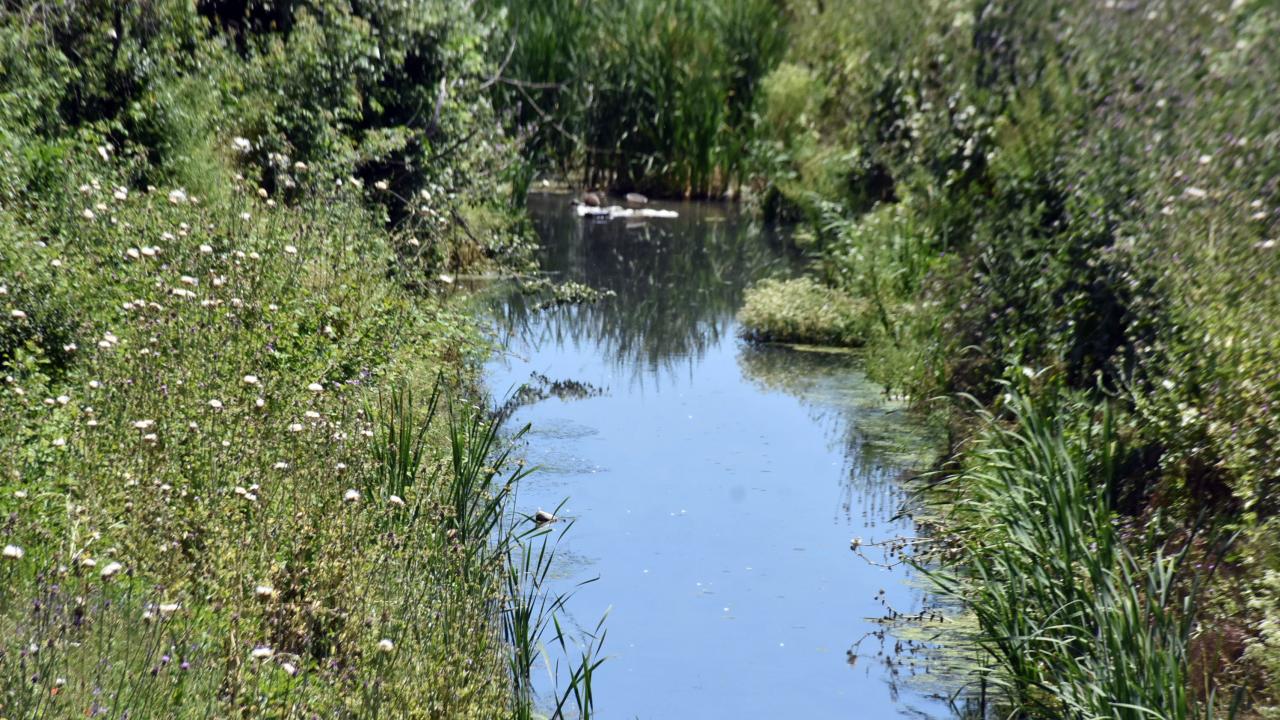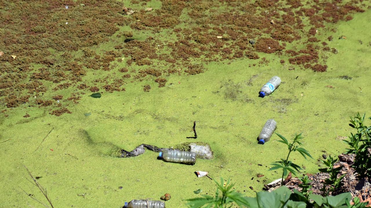 Yıldırım Mahallesi Kirazlık mevkisinde, bölgede tesis ve evsel atıklar nedeniyle kirlenen nehrin yüzeyi yosunlarla kaplandı.