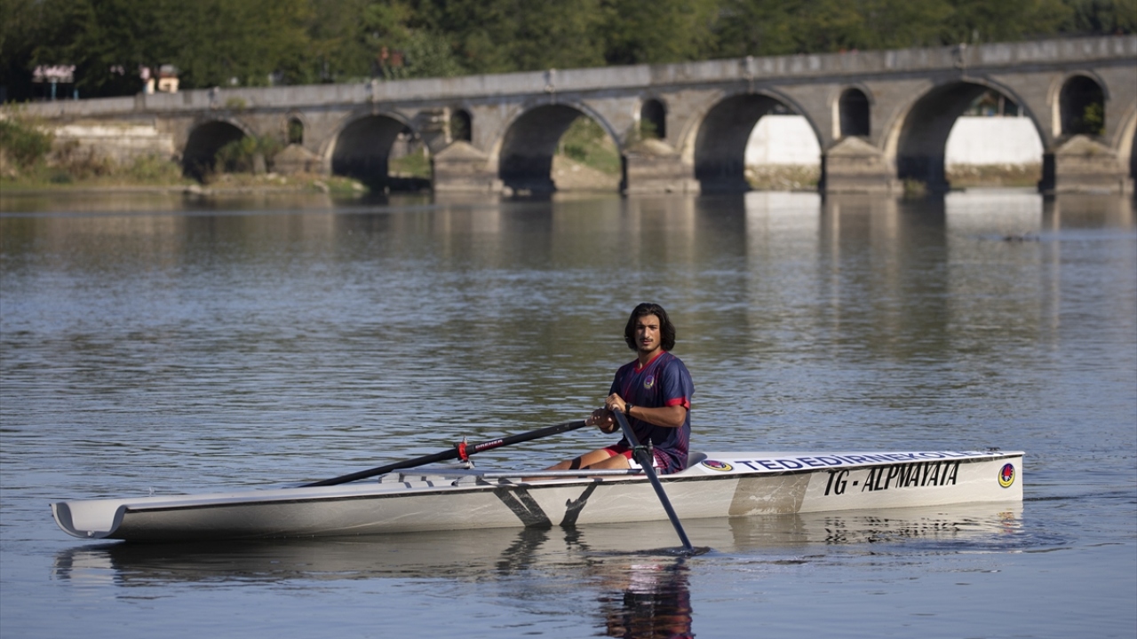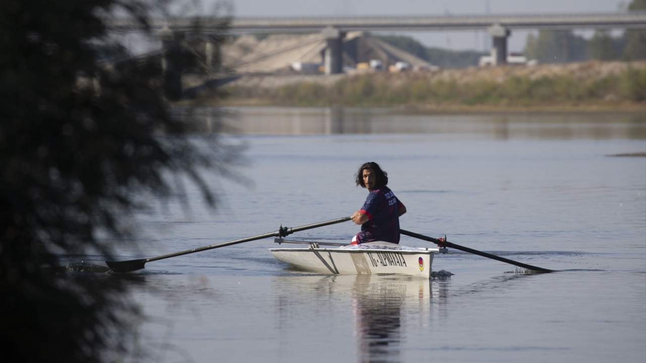 Edirne'nin ilk kürek sporcuları Meriç Nehri'nde antrenman yaptı