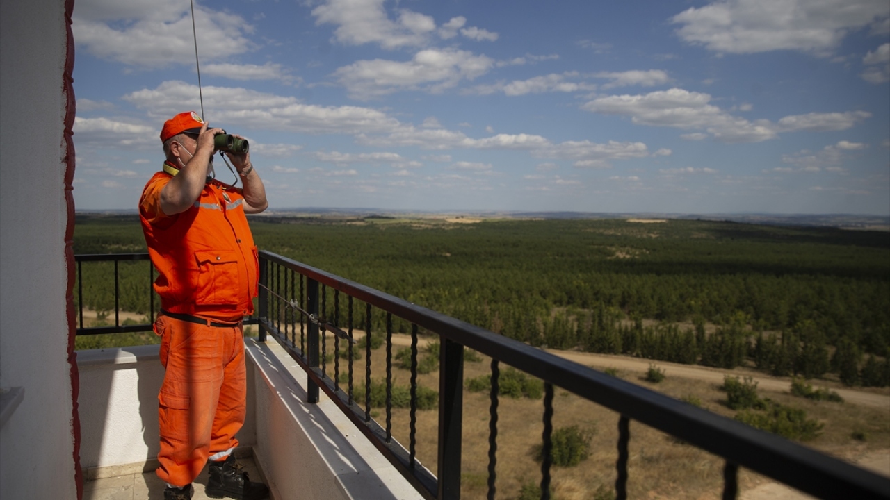 Edirne Orman İşletme Müdürlüğüne bağlı 3 gözetleme kulesinde görevli personel, olası yangınlara karşı ormanları 7 gün 24 saat gözetliyor.