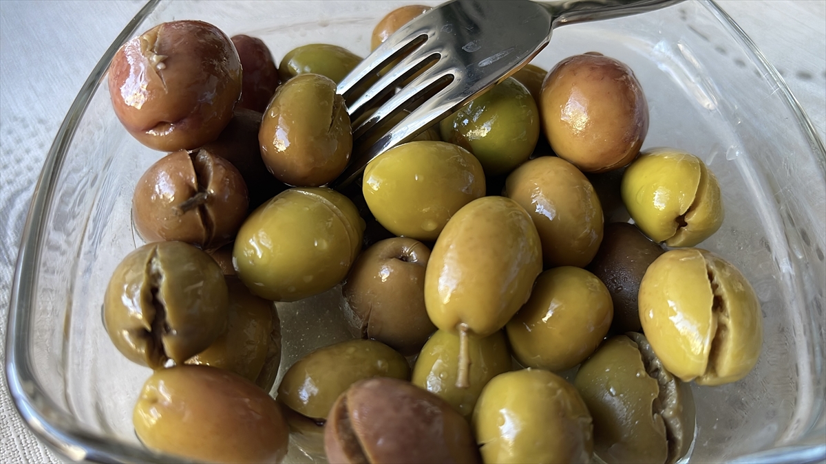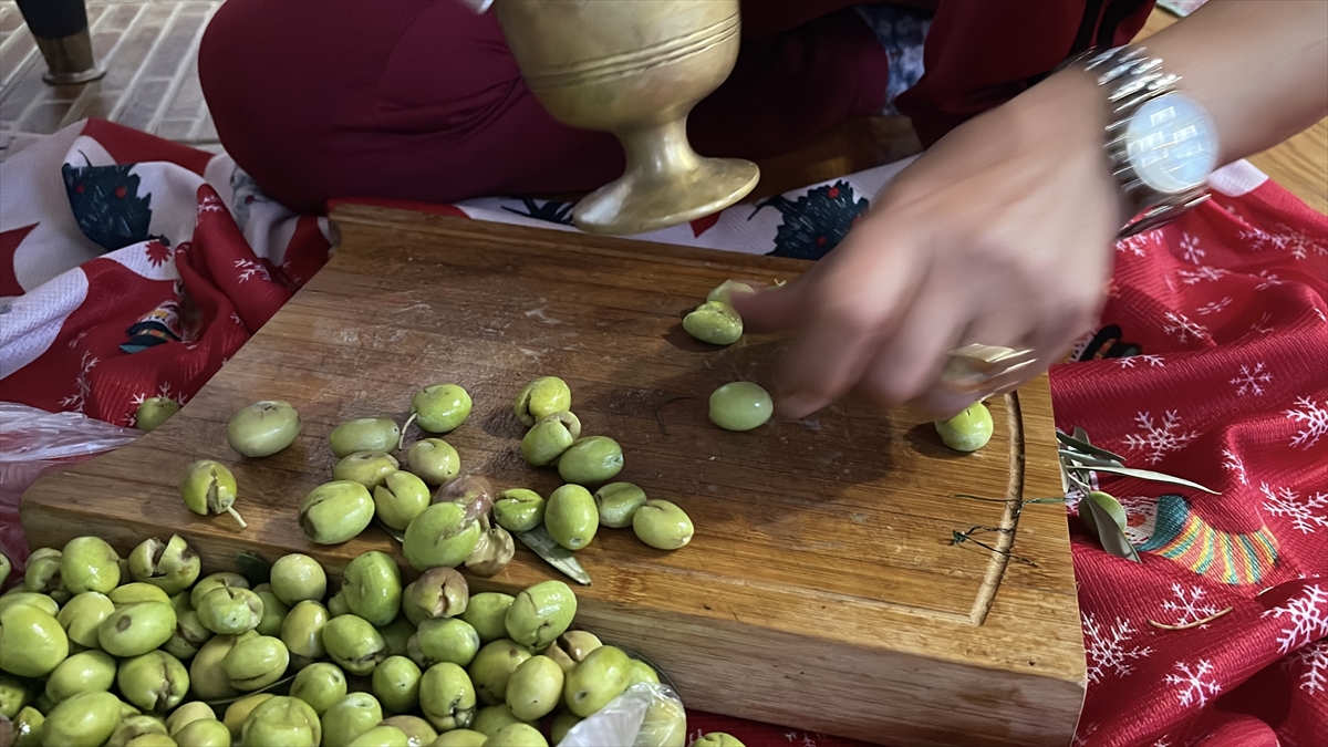 Çelik, kırma zeytin yapımında geleneksel taşla kırma yöntemini kullandıklarını belirterek, zeytinlerin tuzlu suda ıslatılıp sarardıktan sonra süzülüp, limon gibi malzemelerle yeniden tatlandırılarak tüketime hazır hale getirildiğini söyledi.