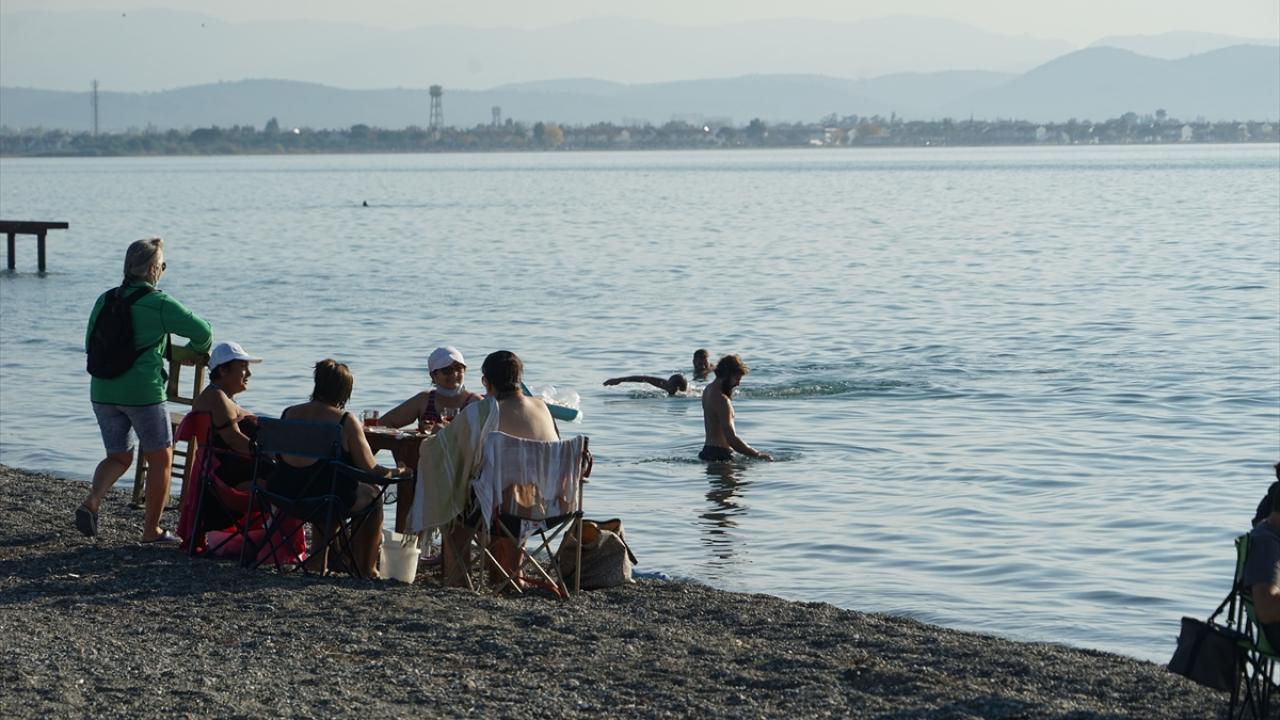 Türkiye'nin doğusunda serin hava etkili olurken kasım ayının ilk günlerinde yer yer sıcaklıkların 23-25 derecelerde seyrettiği Kuzey Ege'nin tatil merkezlerinden Edremit Körfezi'nde kış sezonunu geçirenler, güzel hava ve denizin keyfini çıkarıyor.