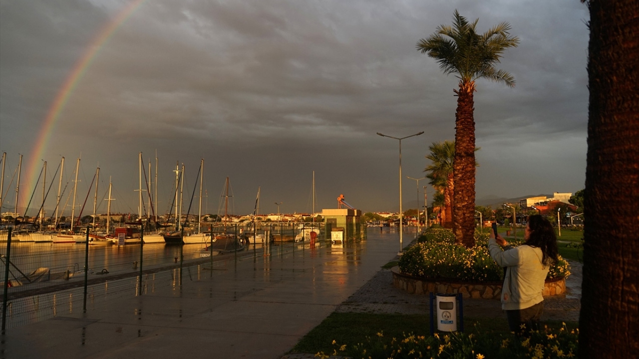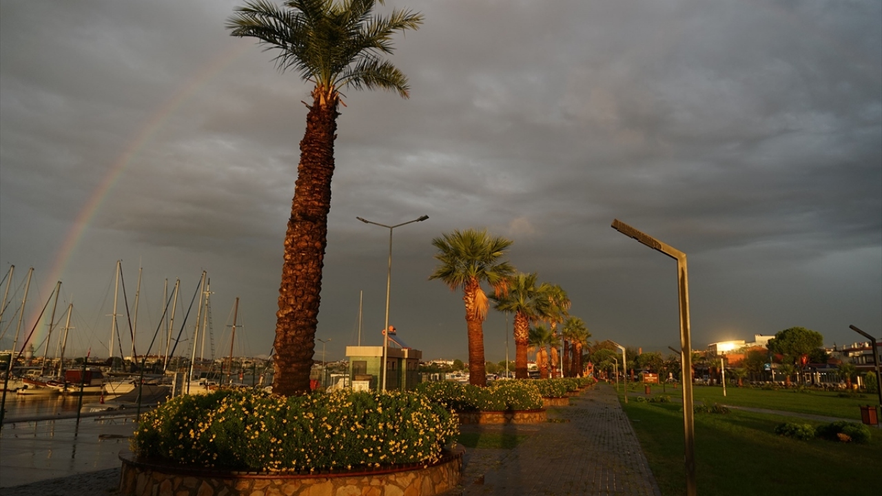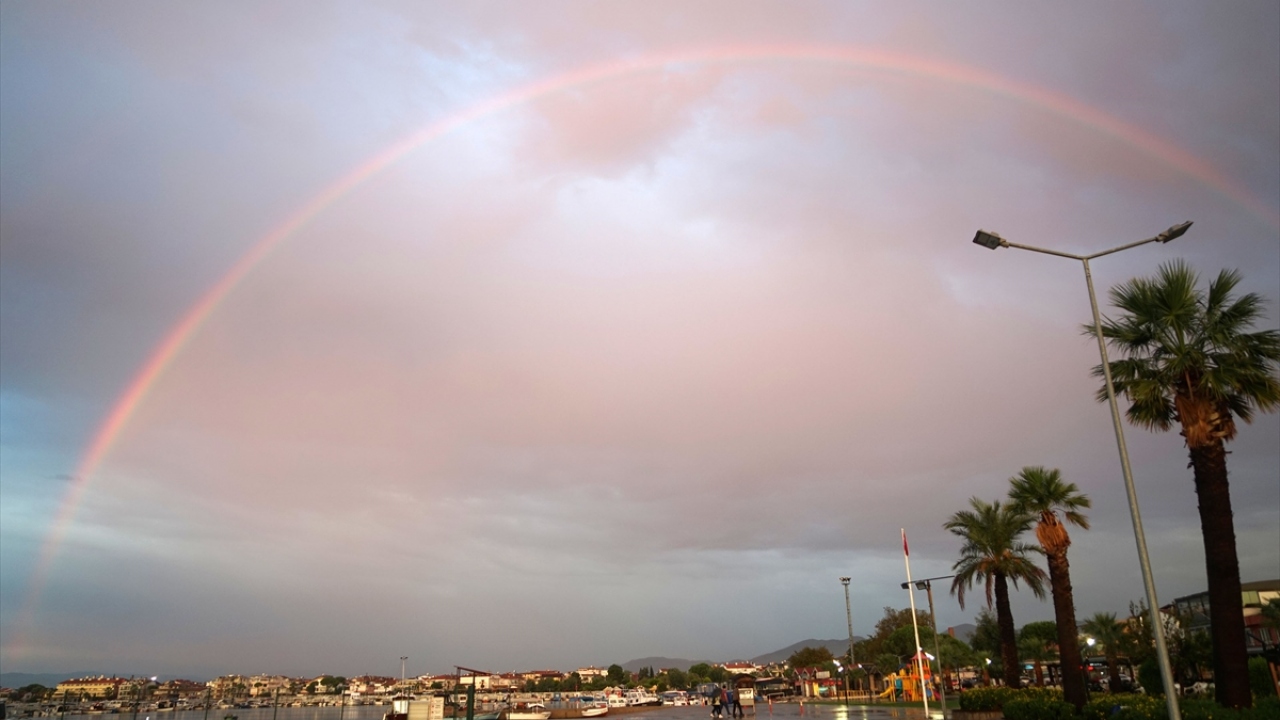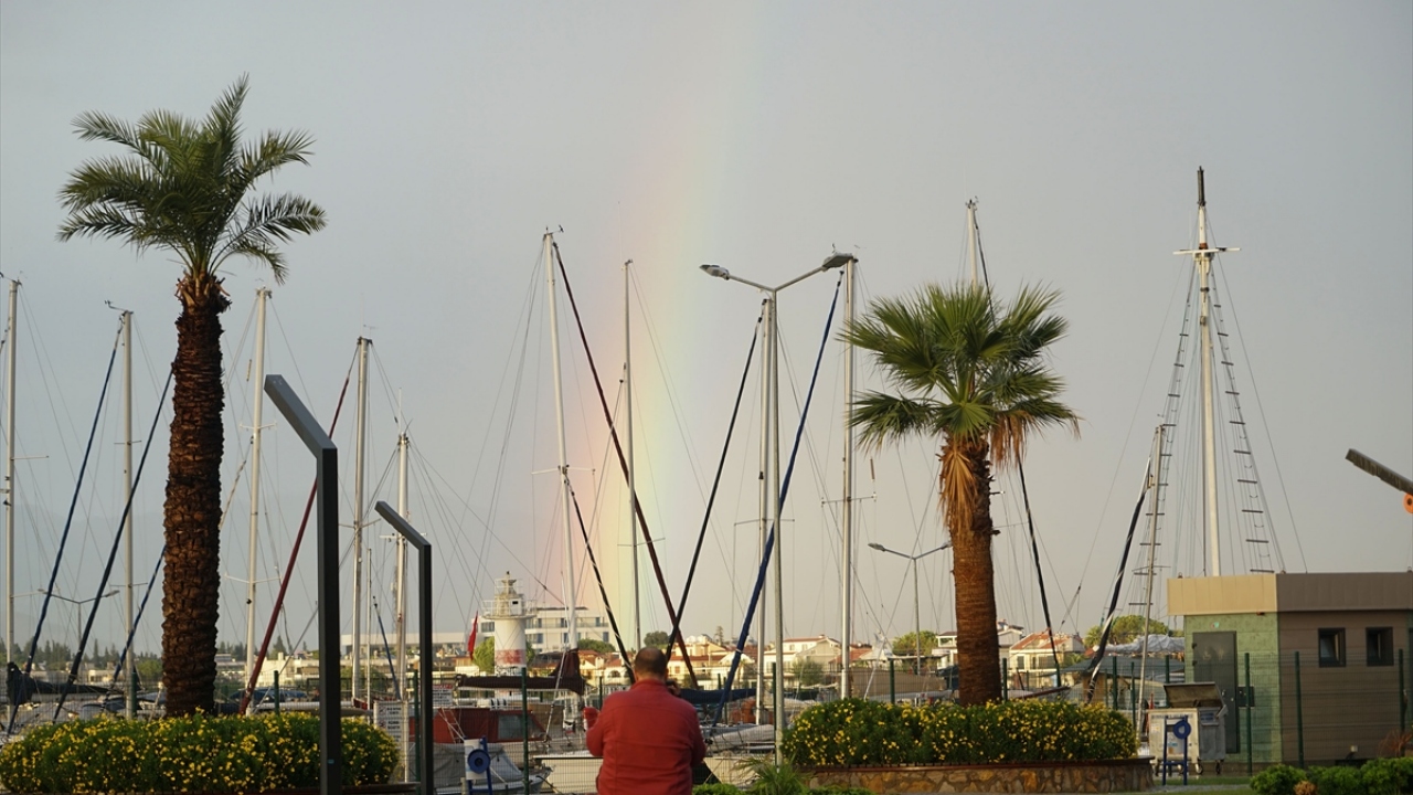 Kuzey Ege'de sabah saatlerinden beri etkili olan sağanak yağışın ardından akşamüzeri oluşan ve yaklaşık yarım saat havada kalan gökkuşağı adeta güzel görüntü oluşturdu.