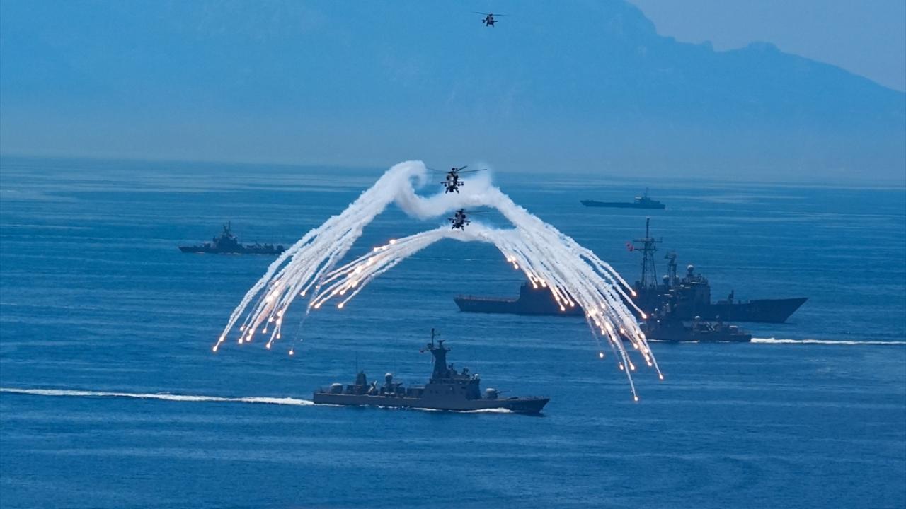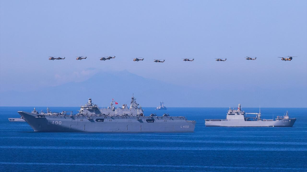 Kıbrıs Barış Harekatı`nın 50`nci yılına ithafen Deniz Kuvvetleri Komutanlığı tarafından 50 gemi ile Cumhurbaşkanı Recep Tayyip Erdoğan`ı selamlama geçişi gerçekleştirildi. Selamlamaya İtalyan Durand de la Penne fırkateyni ile Libya`nın Shafak korveti de eşlik etti.