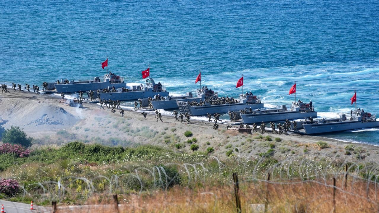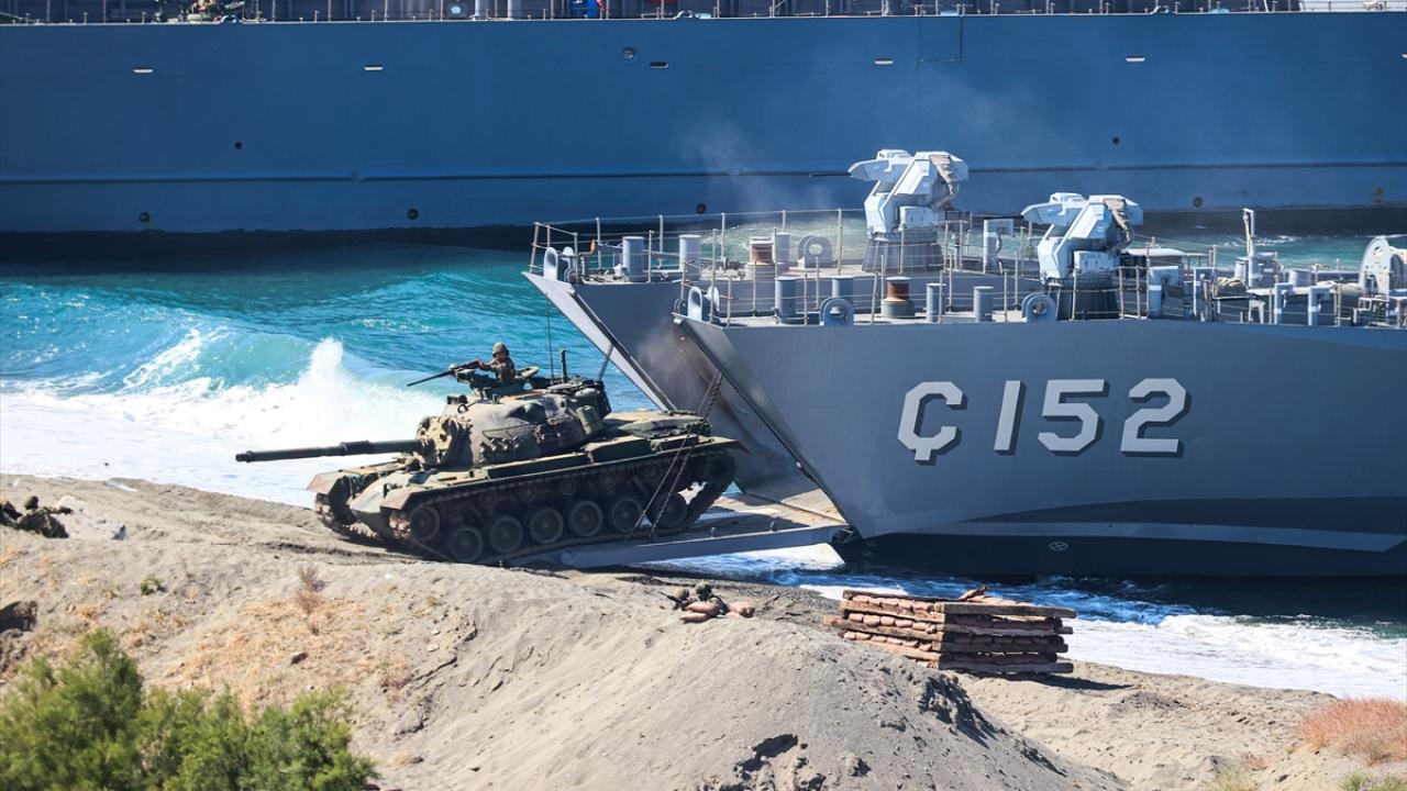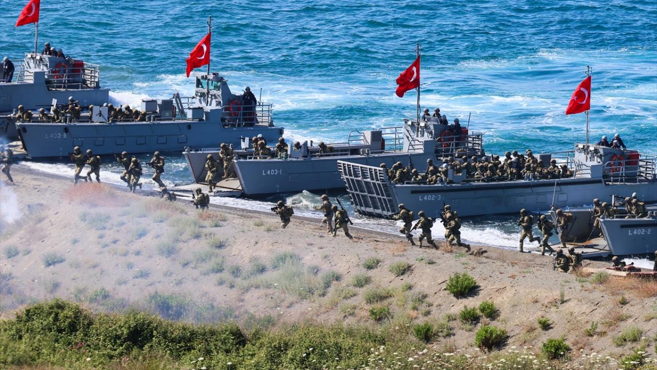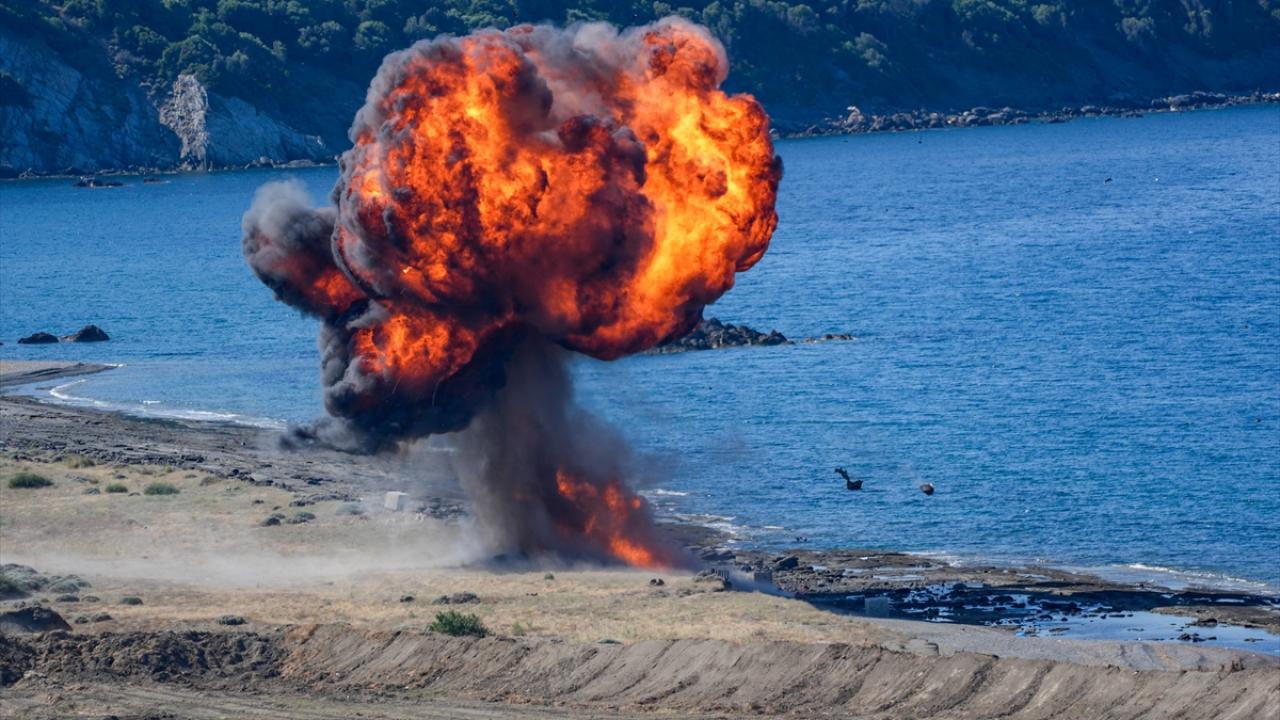 Tatbikatta kıyıya yanaşan çıkarma gemilerinin kapak atması sırasında Çorlu`daki üslerinden havalanan Akıncı TİHA`lar da tam isabetli atışlarıyla harekata destek oldu.