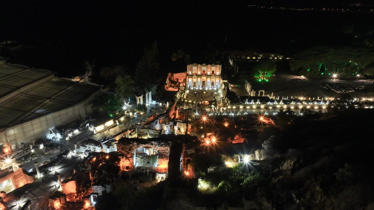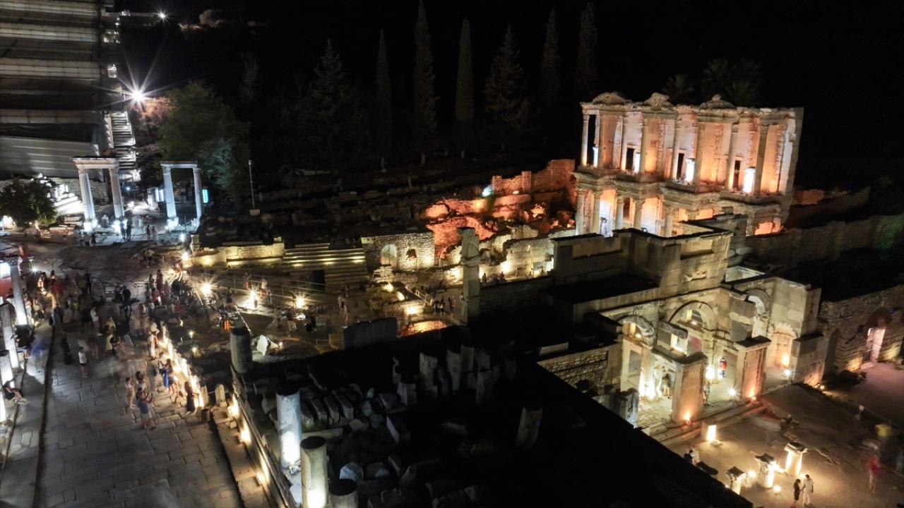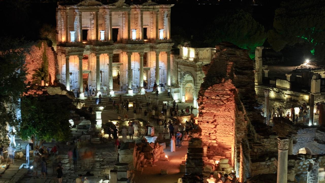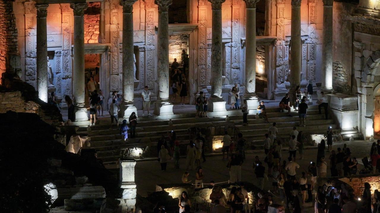 Kültür ve Turizm Bakanlığının başlattığı gece müzeciliği uygulaması, Efes Antik Kenti`nin sahip olduğu eşsiz güzellikleri gün batımından sonra da görme imkanı sağladı. Özellikle yaz döneminde sahil bölgelerindeki yüksek sıcaklık nedeniyle gündüz plajları tercih eden turistler, bu sayede akşamın serin saatlerinde Efes`i görme imkanı buldu.