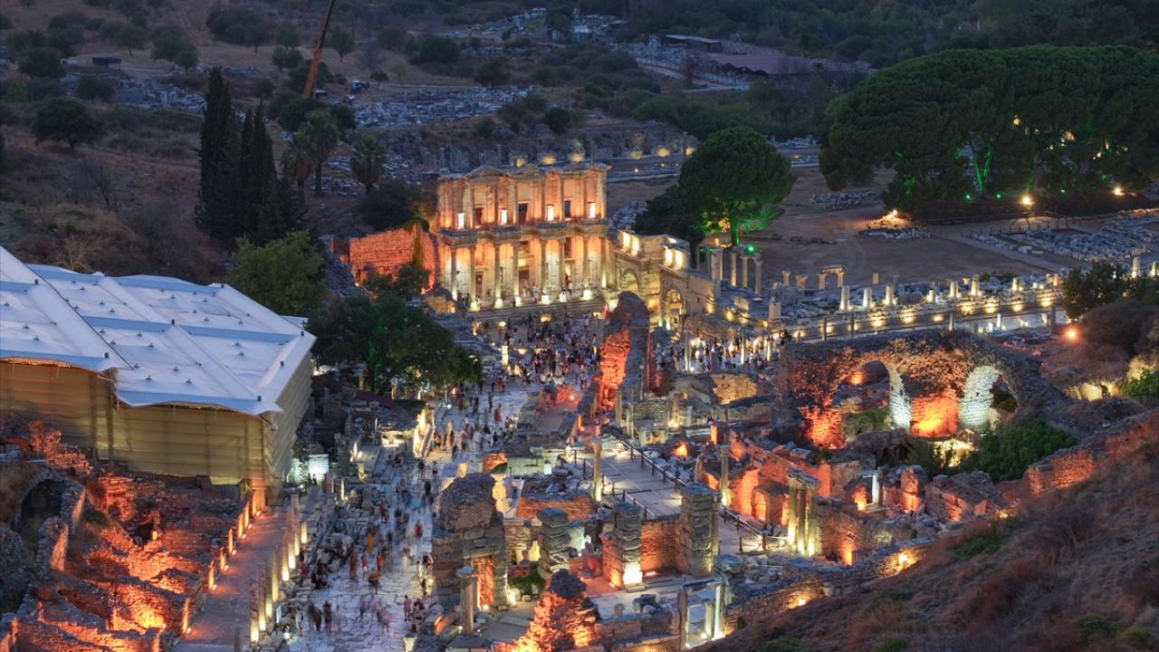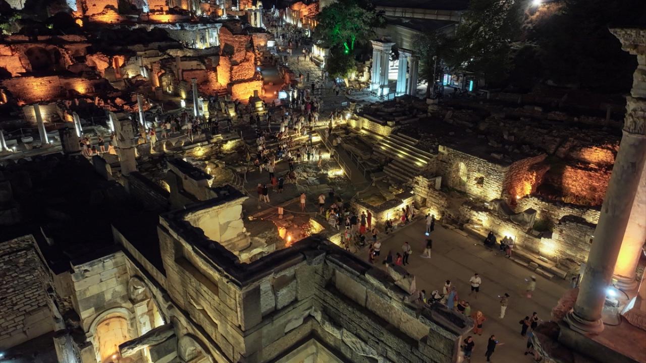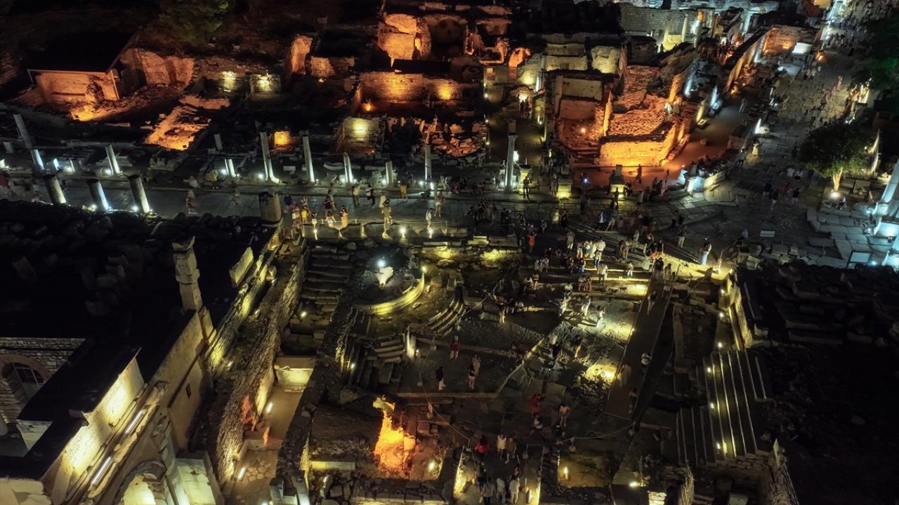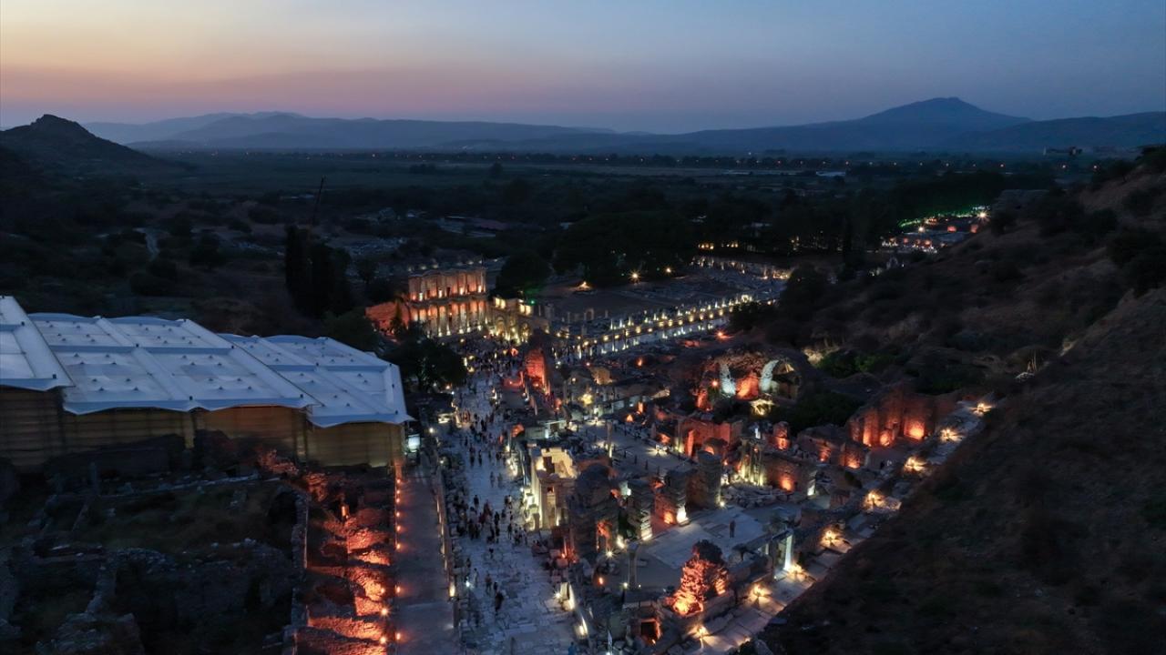Kültür ve Turizm Bakanlığının başlattığı gece müzeciliği uygulaması, Efes Antik Kenti`nin sahip olduğu eşsiz güzellikleri gün batımından sonra da görme imkanı sağladı. Özellikle yaz döneminde sahil bölgelerindeki yüksek sıcaklık nedeniyle gündüz plajları tercih eden turistler, bu sayede akşamın serin saatlerinde Efes`i görme imkanı buldu.