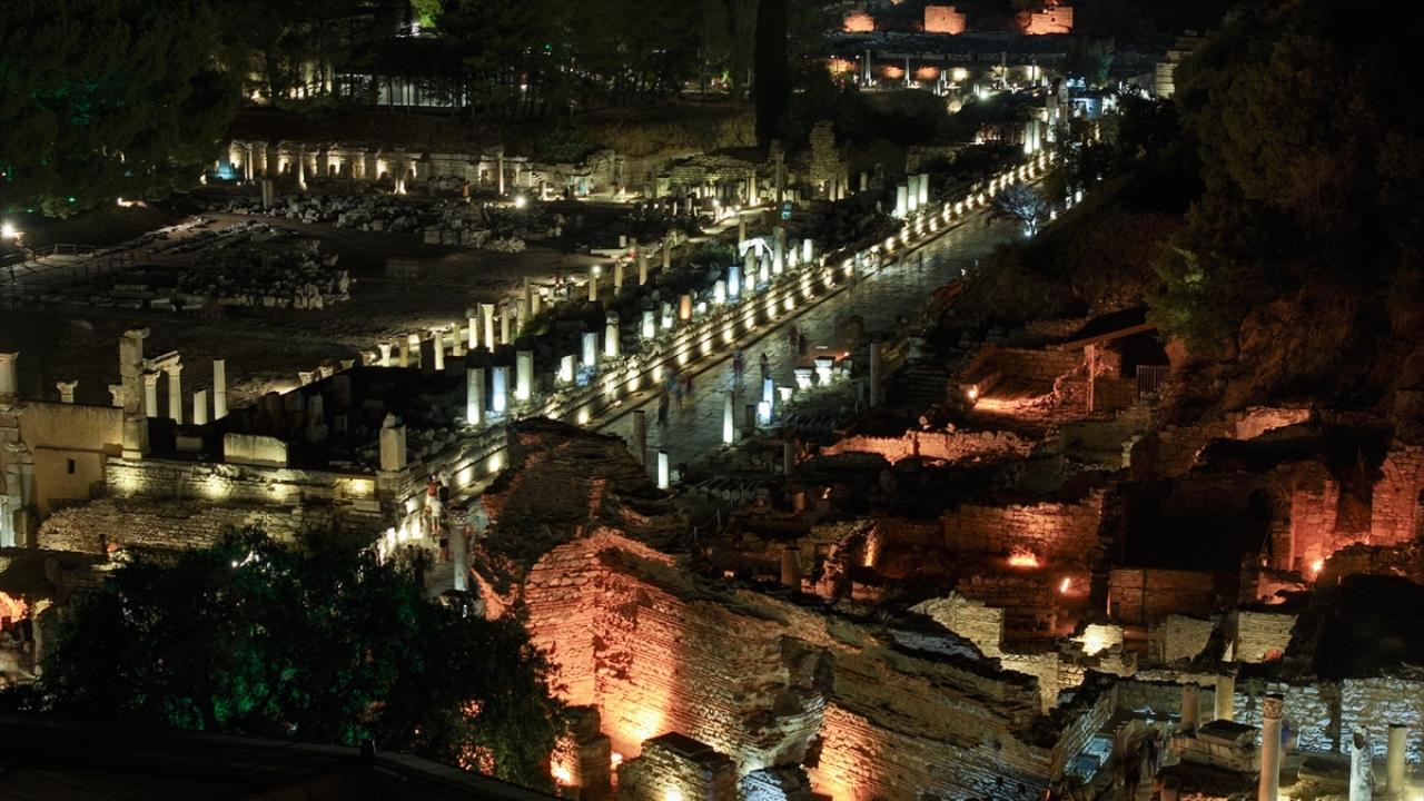 Celsus Kütüphanesi, Agora Meydanı, Kuretler Caddesi, Domitian Tapınağı, Trajan Çeşmesi, 25 bin kişilik oturma kapasitesiyle büyük antik tiyatro, stadyum ve antik liman bölgelerinde uygulanan aydınlatmalar ziyaretçilere eşsiz bir manzara sunuyor.