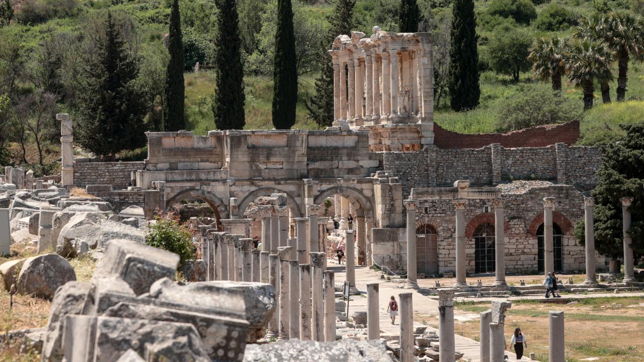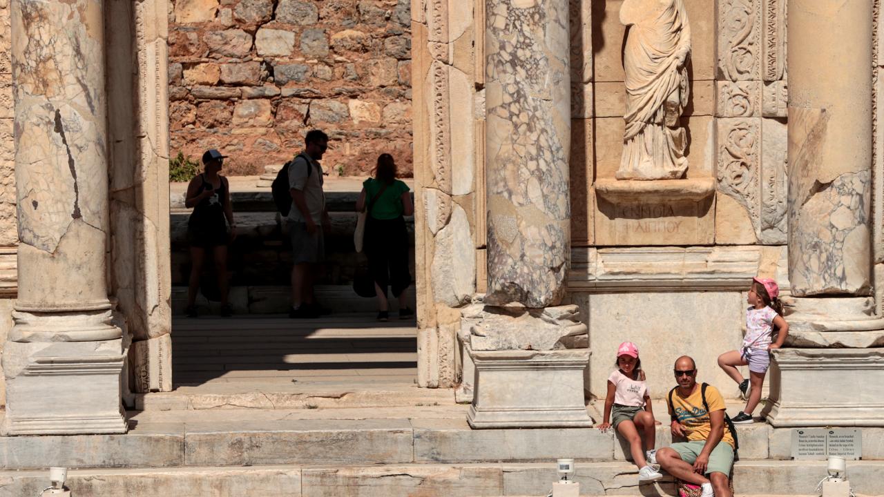 Efes Antik Kenti'nde salgının izi `kruvaziyer` turizmiyle canlanıyor