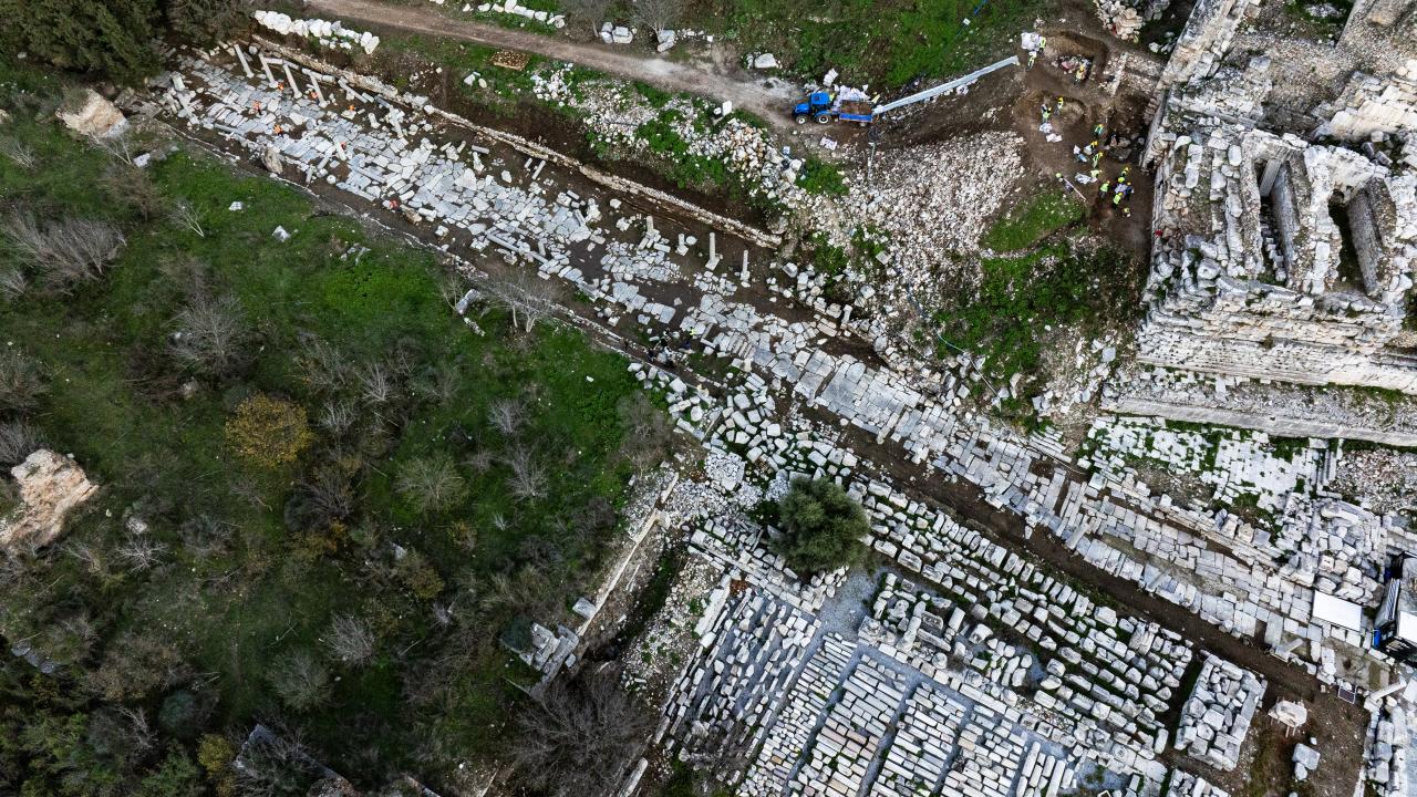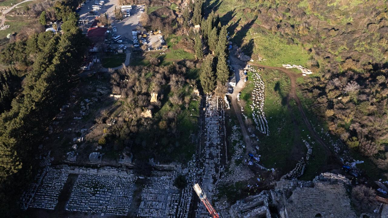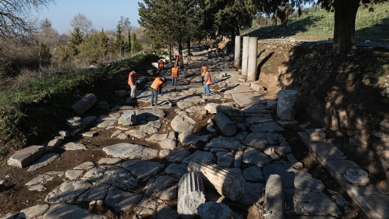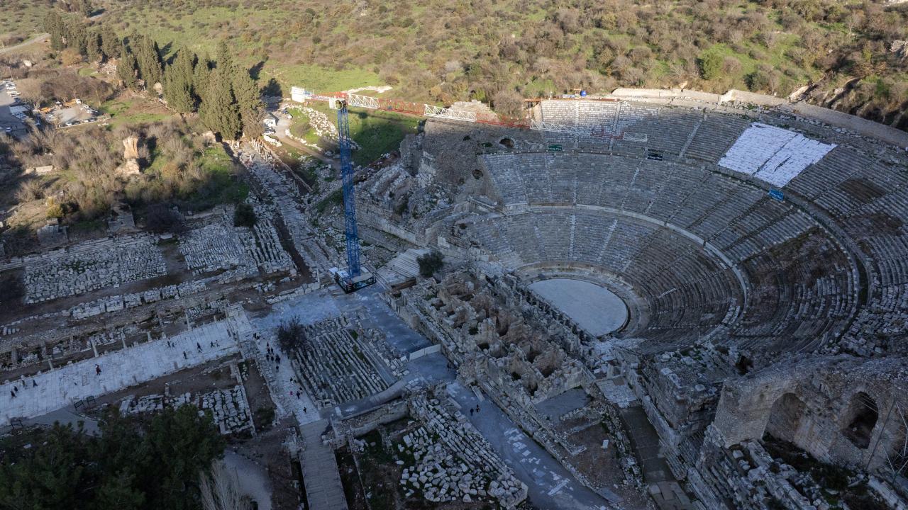 Kültür ve Turizm Bakanlığının "Geleceğe Miras Sonsuz Efes" projesi kapsamında ören yerinde düzenlemeler yapılıyor.