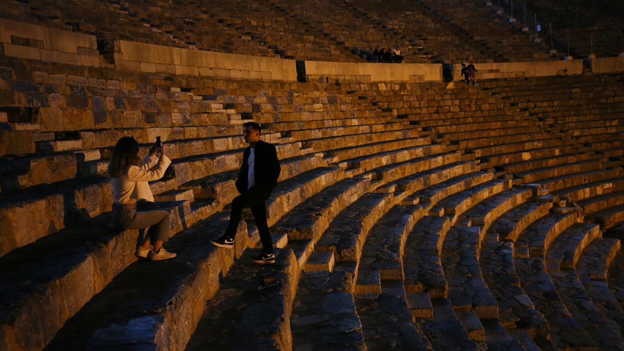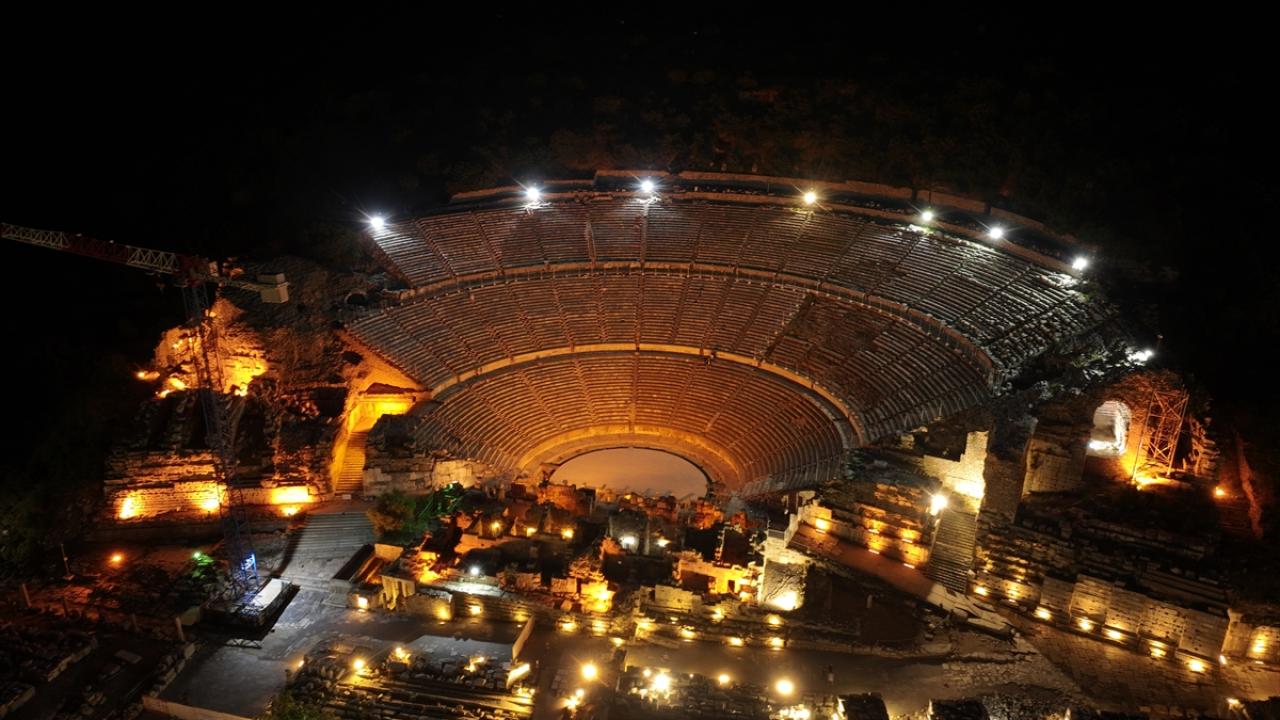 Özellikle yaz döneminde sahil bölgelerindeki yüksek sıcaklık nedeniyle gündüz plajları tercih eden turistlerin akşamın serin saatlerinde müzeleri ziyaret edebilmesinin amaçlandığı uygulama kapsamında antik kent, LED aydınlatma sistemiyle aydınlatıldı.