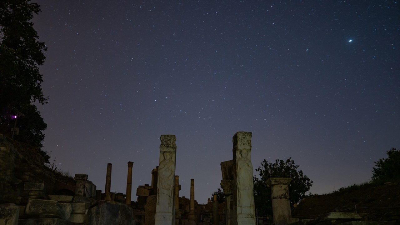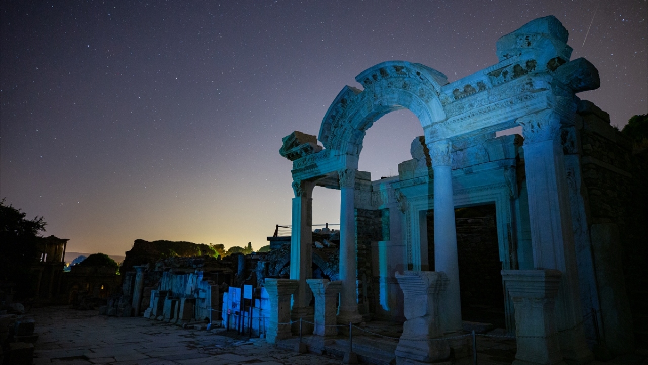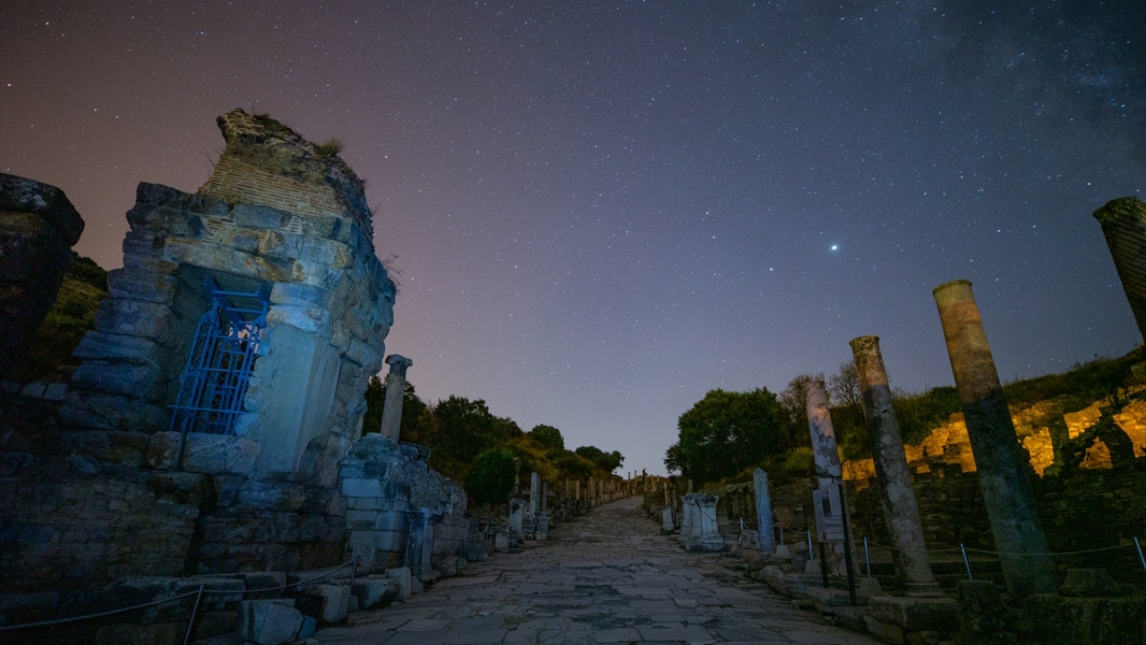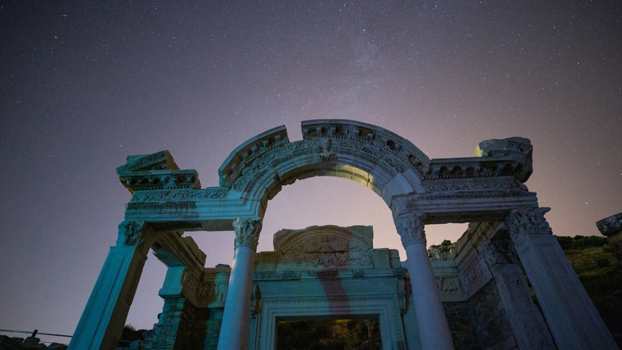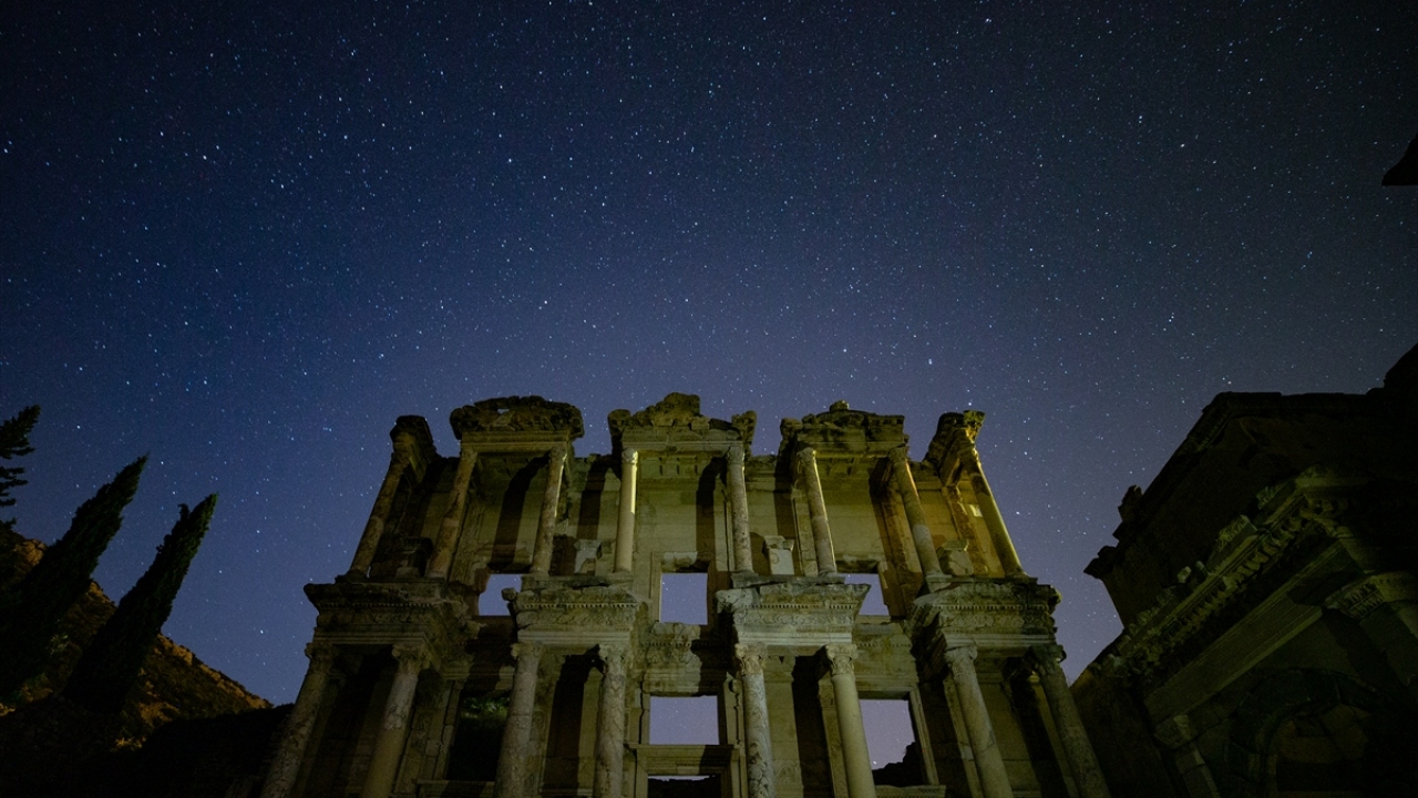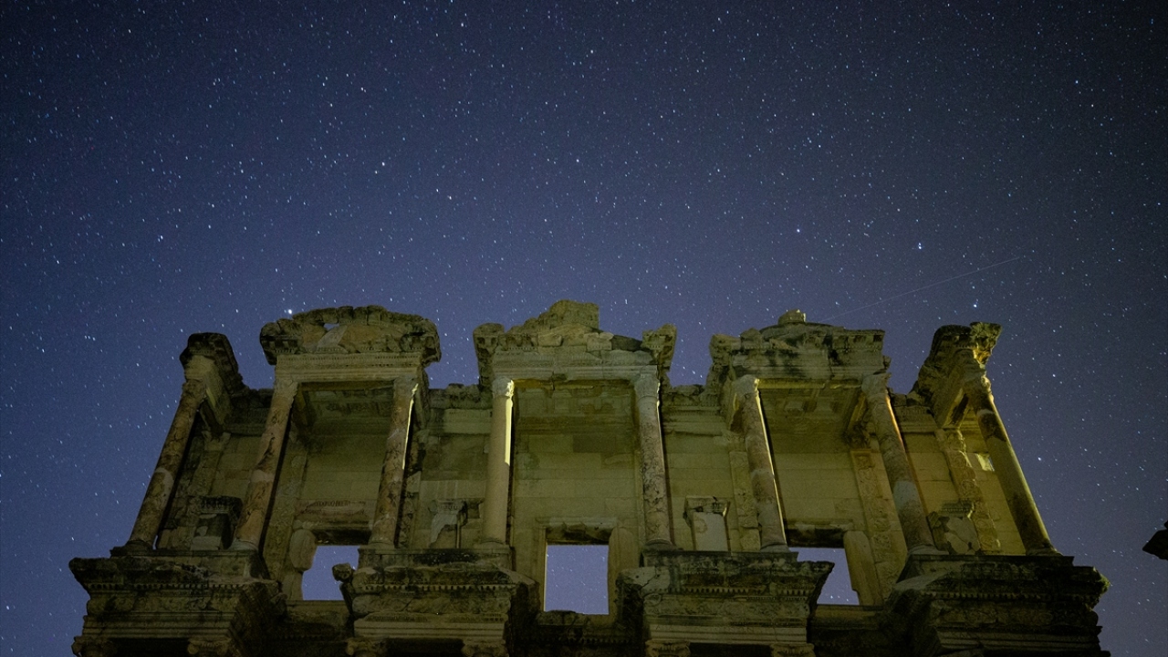 Dünyanın önde gelen antik yerleşimlerinden olan ve UNESCO Dünya Kültür Miras Listesi'nde bulunan Efes Antik Kenti'nde uzun pozlama tekniğiyle görüntülenen yıldızlar görsel şölen oluşturdu.