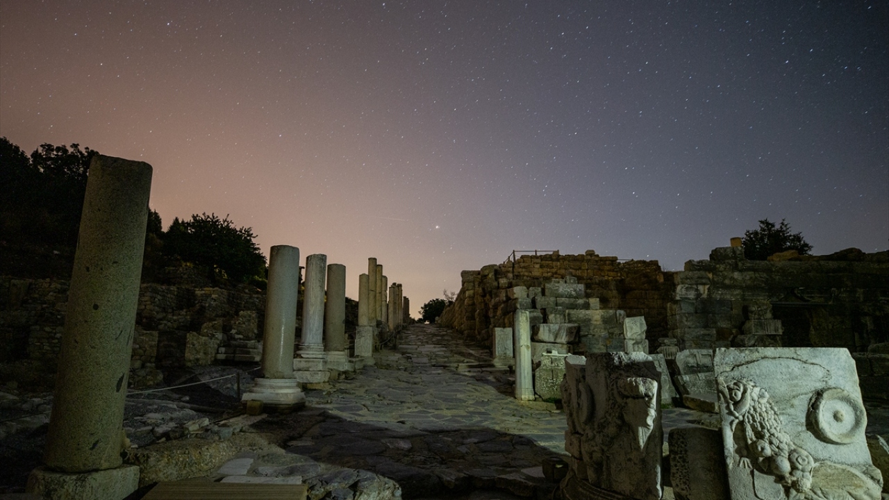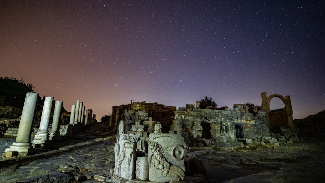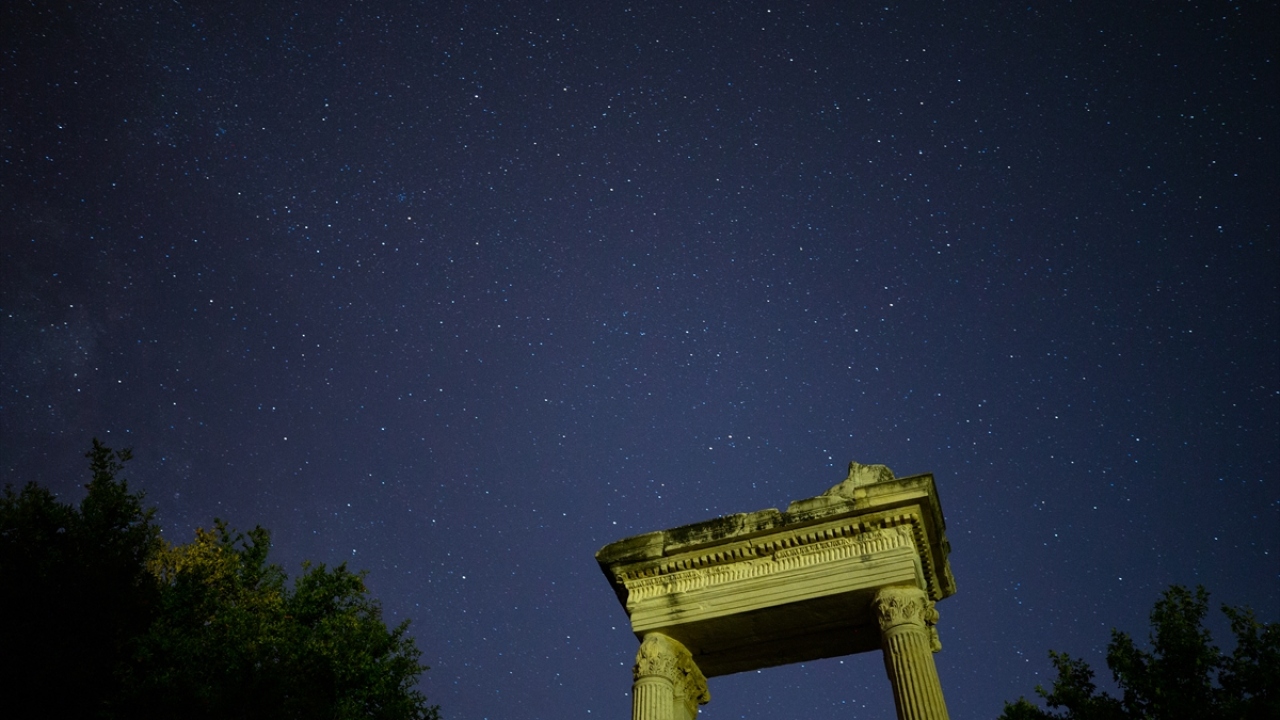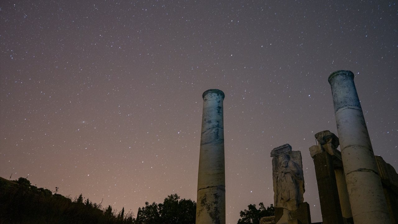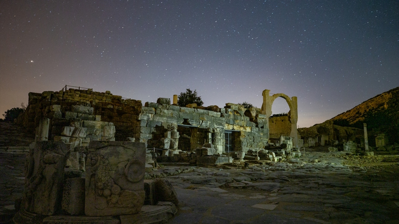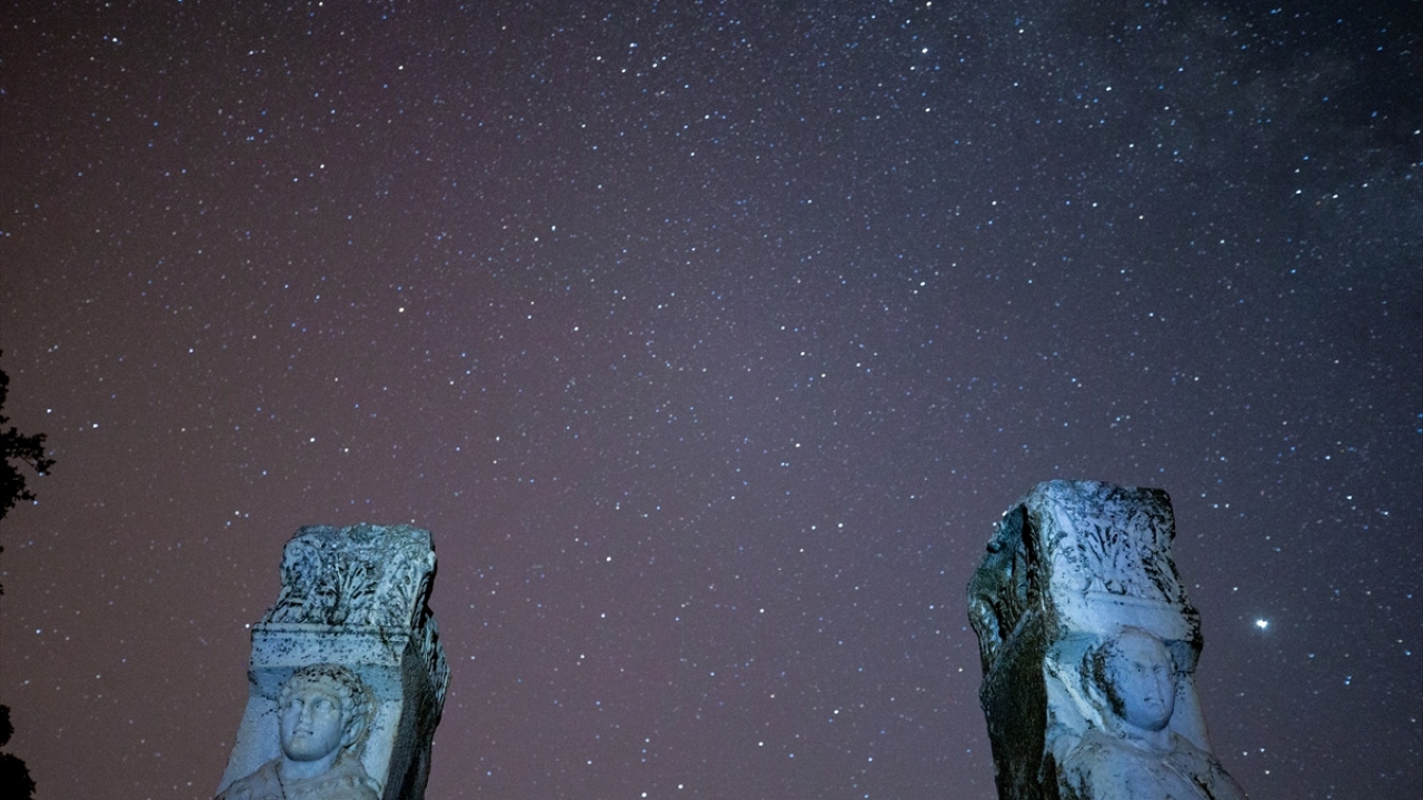 Dünyanın önde gelen antik yerleşimlerinden olan ve UNESCO Dünya Kültür Miras Listesi'nde bulunan Efes Antik Kenti'nde uzun pozlama tekniğiyle görüntülenen yıldızlar görsel şölen oluşturdu.