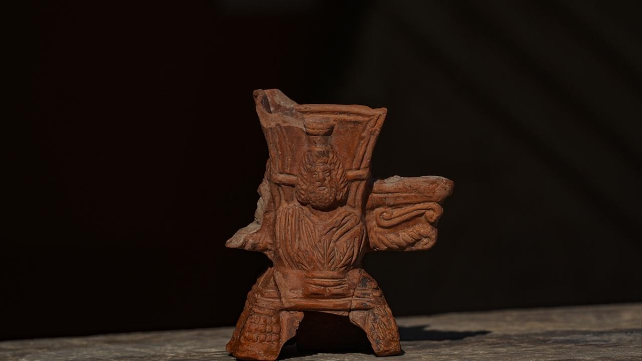 Aybek, kazılar sırasında pişmiş topraktan üzerinde Mısır tanrısı Serapis`in kabartmasının yer aldığı tütsü kabının bulunduğunu söyledi.