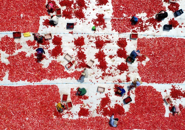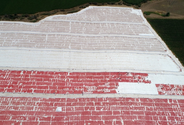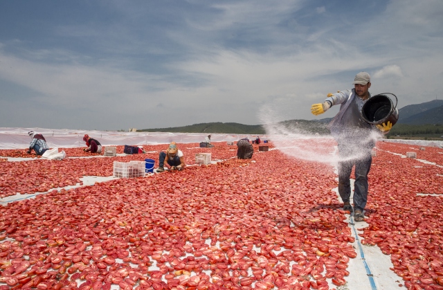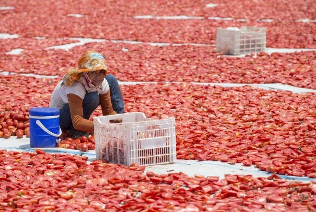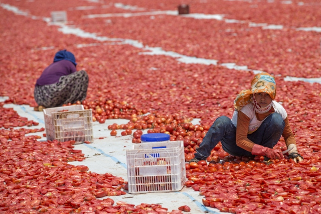 Türkiye'nin kuru domates ihracatının yüzde 95'ini karşılayan Ege Bölgesinde hasatı başlayan domatesler kuruması için güneşe serildi. Ege'nin verimli topraklarında yetişen ve güneşte kurutulan domatesler, Avrupa ülkeleri, ABD, Kanada ve Japonya gibi ülkelerden yoğun talep görüyor.