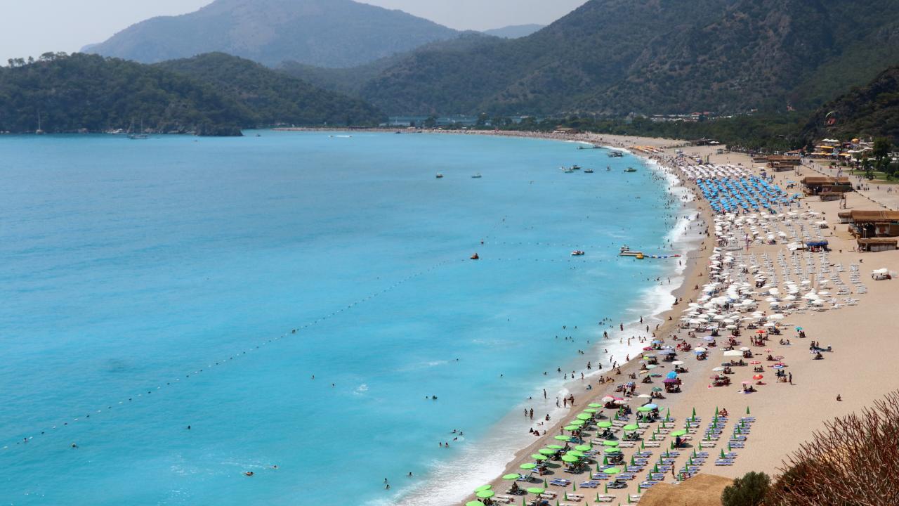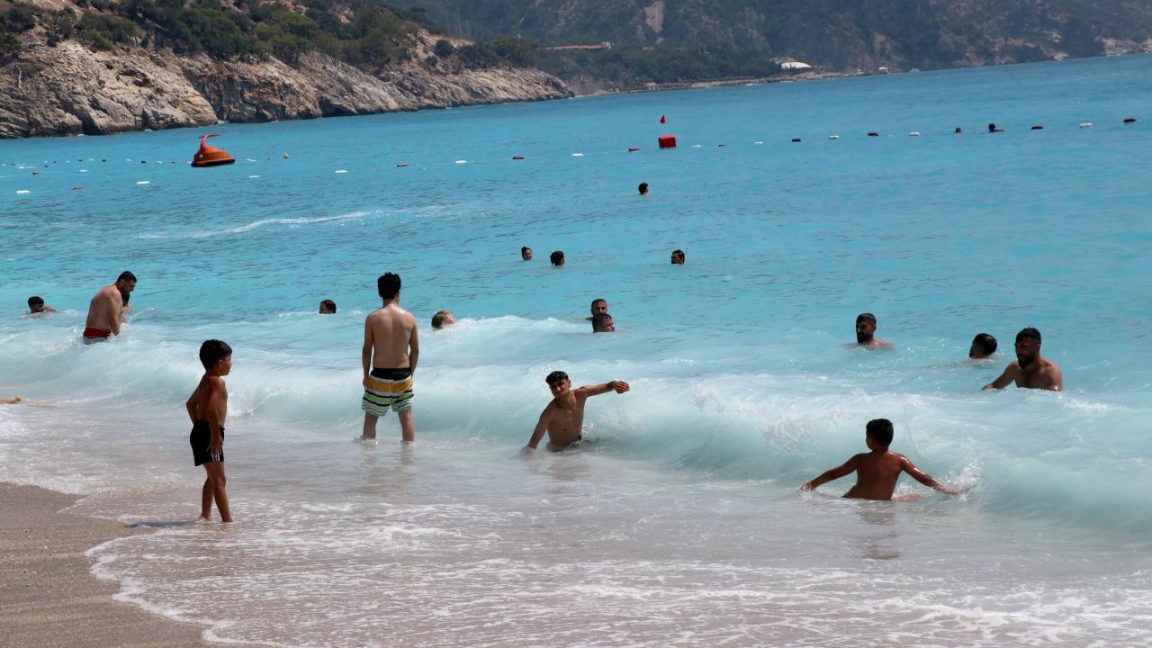Fethiye ilçesinde tatilciler, Ölüdeniz Mahallesi`ndeki Belcekız ve Kumburnu plajlarında denize girdi, güneşlendi.