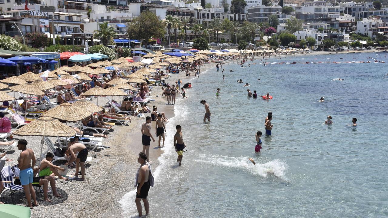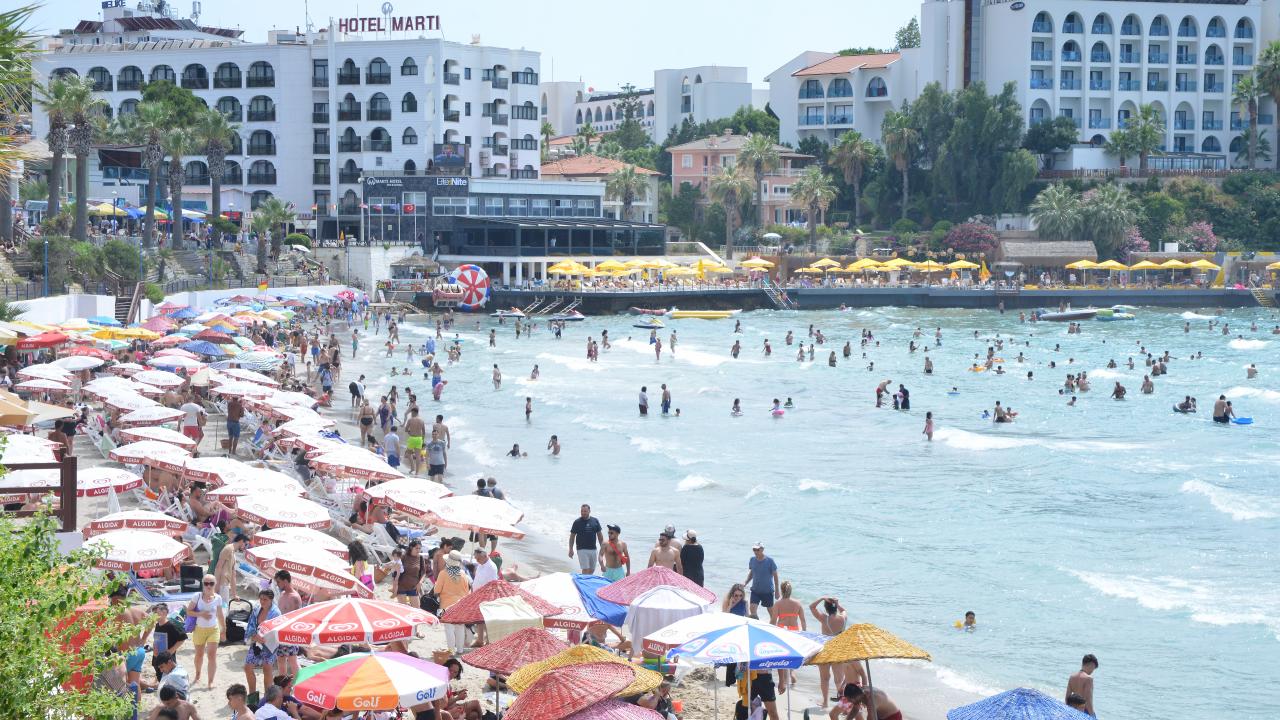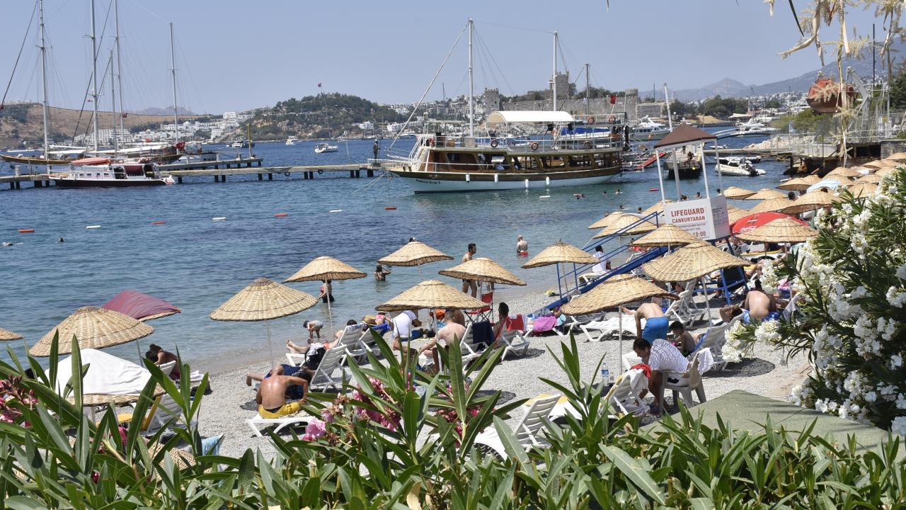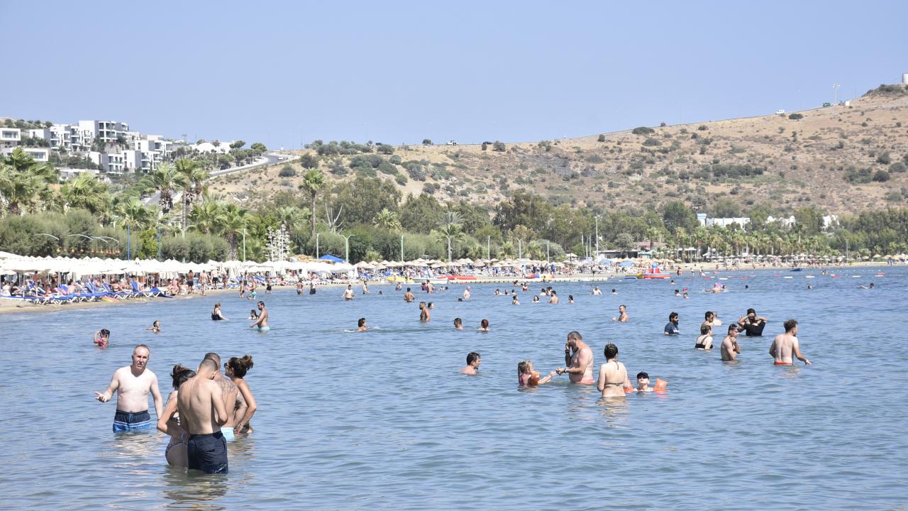 Bodrum ilçesine gelenler, Gümbet, Bitez, Kumbahçe ve Paşatarlası plajlarında deniz, kum ve güneşin tadını çıkardı.