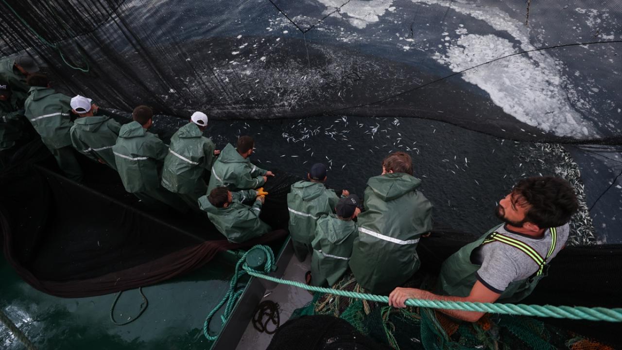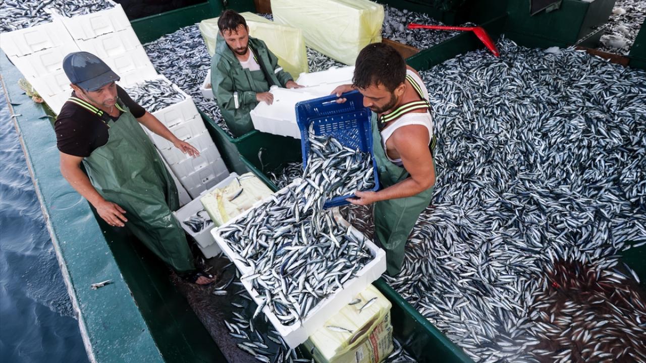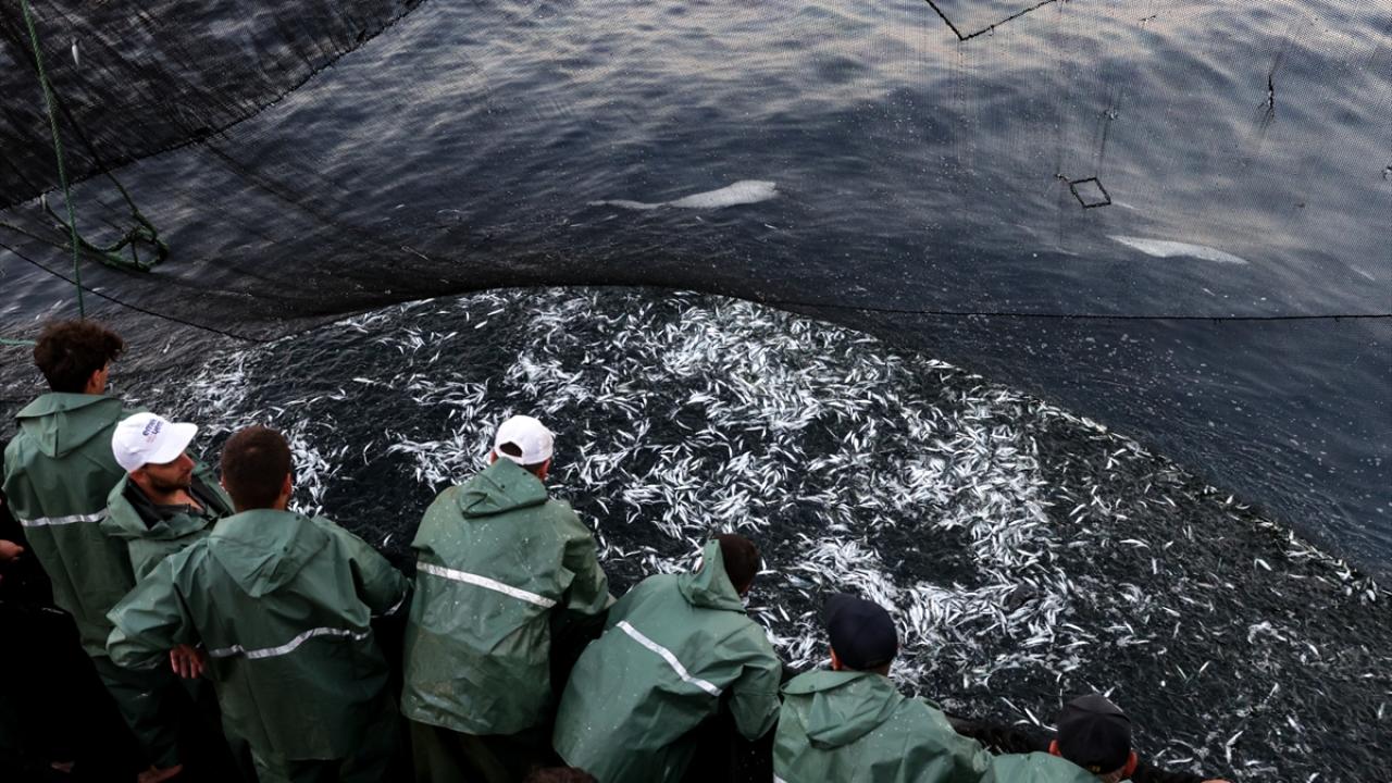 Balık avı için oldukça elverişli deniz ve hava koşulunda gerçekleşen avda ağlara bol miktarda sardalya takıldı.