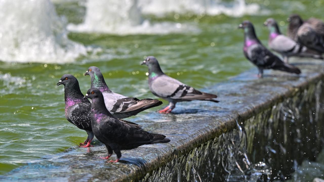 Parklardaki ağaç gölgelerinde dinlenen bazı kişiler su içerek serinlemeye çalıştı.