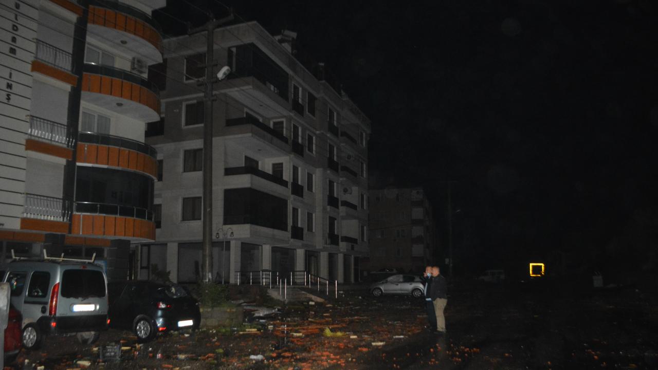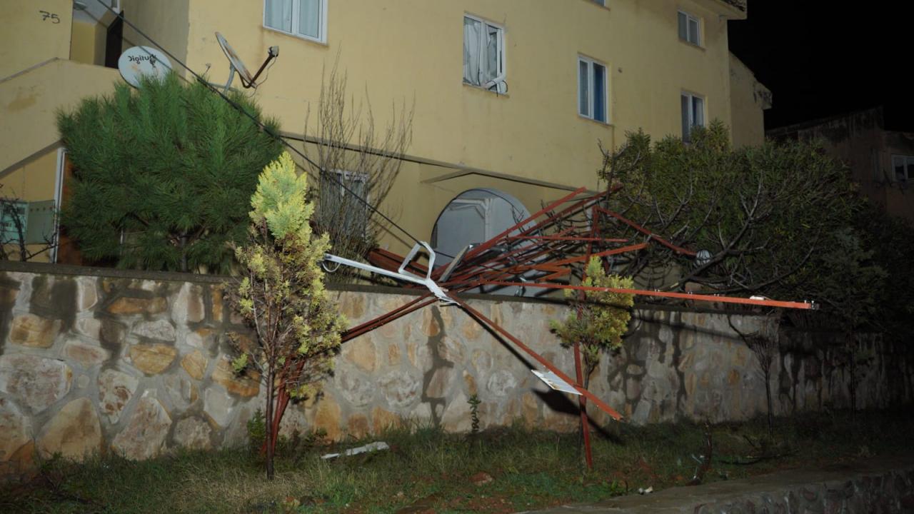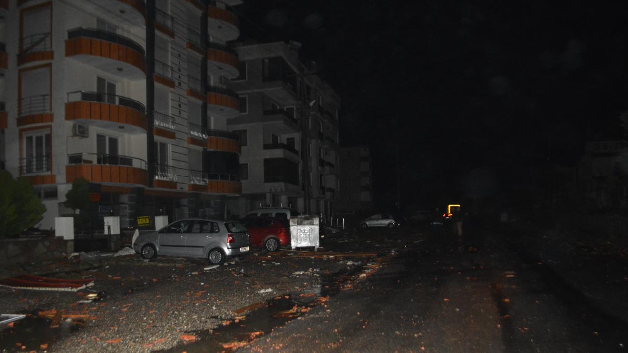 Çeşme Alaçatı Port bölgesinin inşaat alanında, aşırı yağış ve fırtınayla birlikte meydana gelen hortumda, konteyner ve vinç direği devrildi, bazı evlerin çatıları ise uçtu.