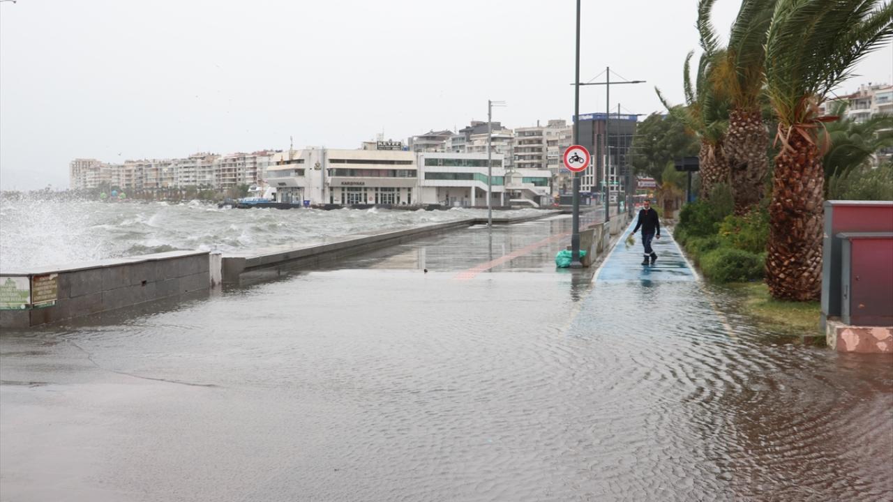 İzmir`de etkili olan fırtına nedeniyle Karşıyaka`da deniz taştı.