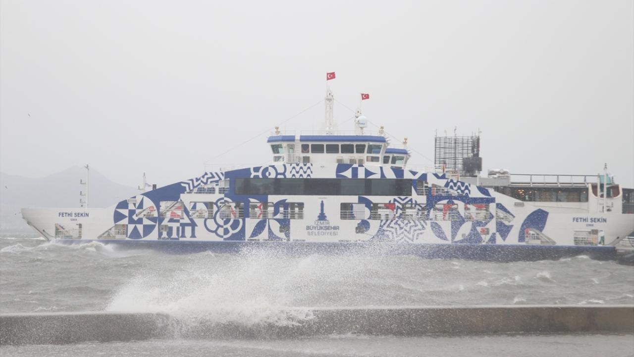 İzmir`de etkili olan fırtına nedeniyle vapur ve arabalı vapur seferleri, 08.25`te iptal edilmişti.