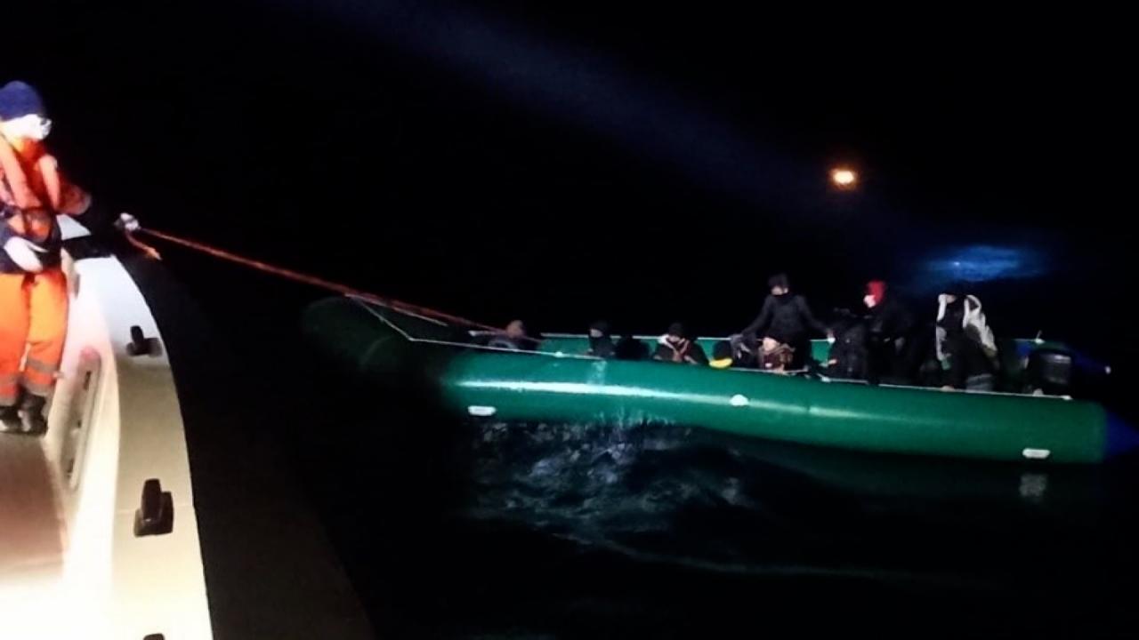 Göçmenlerin bulunduğu tekne insansız hava aracıyla takibe alındı ve teknenin bulunduğu yere Sahil Güvenlik Komutanlığı`na bağlı ekipler sevk edildi.