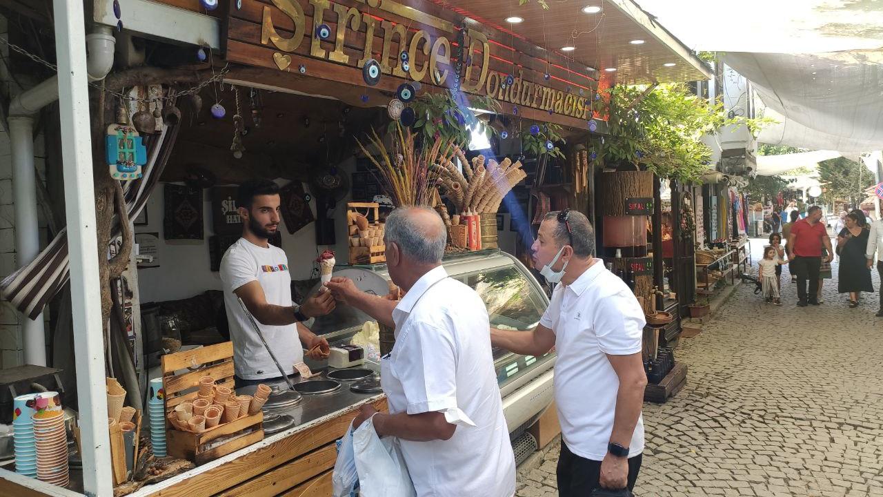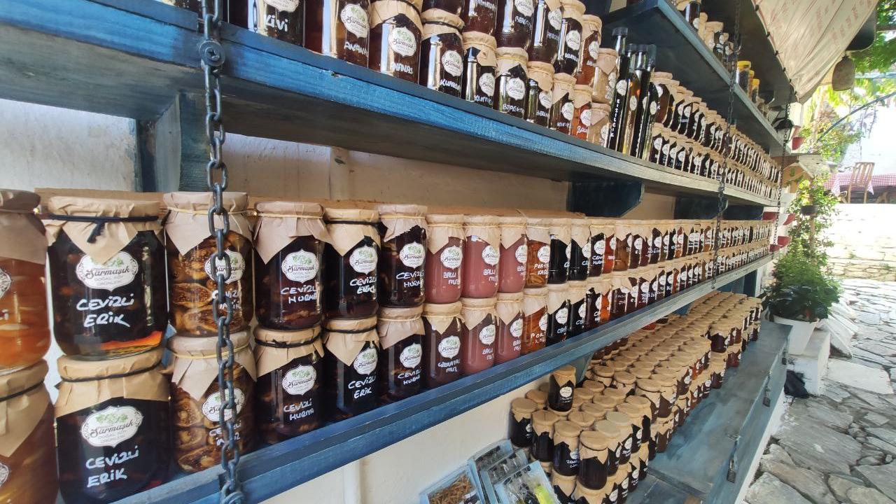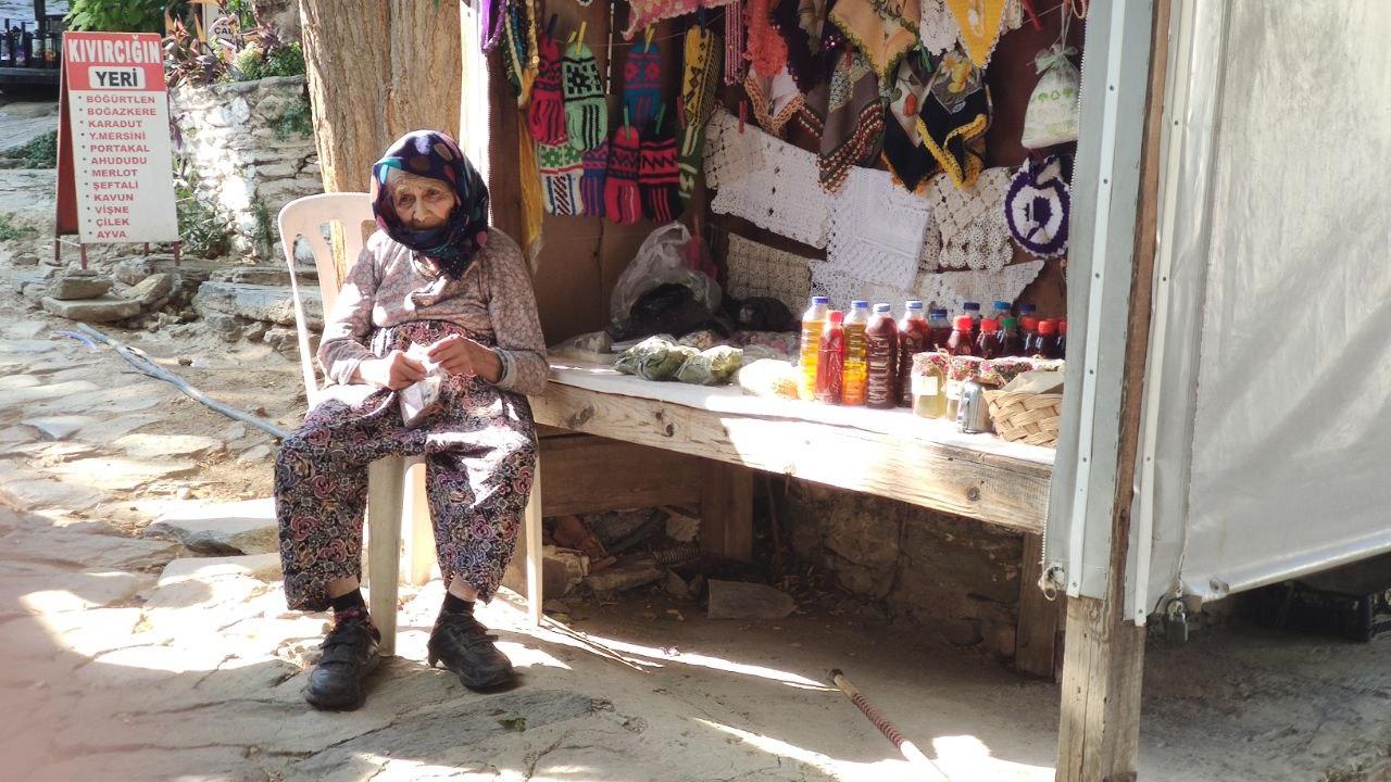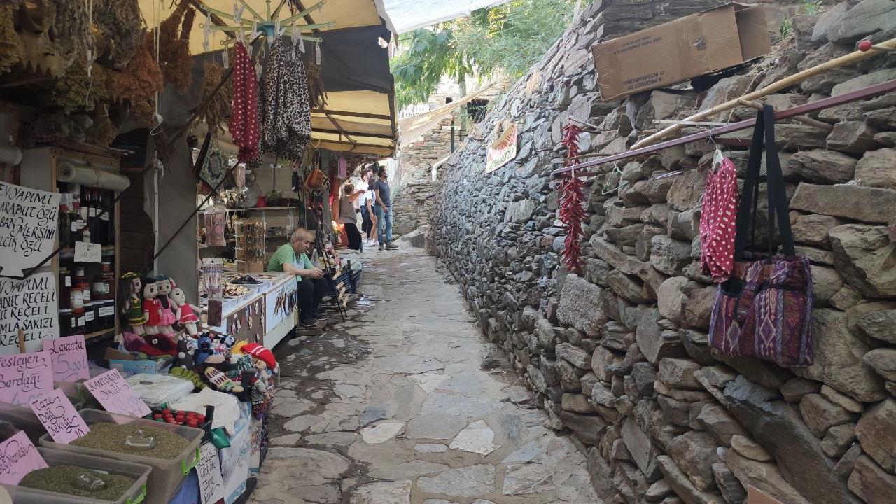 Turizm faaliyetlerinin yoğun yaşandığı Şirince`de dar sokaklarda kurulan alışveriş tezgahlarında kadınlar, yöresel ürünler ile geleneksel el sanatlarıyla ilgili ürünler satarak ailelerinin geçimlerine katkıda bulunuyor.