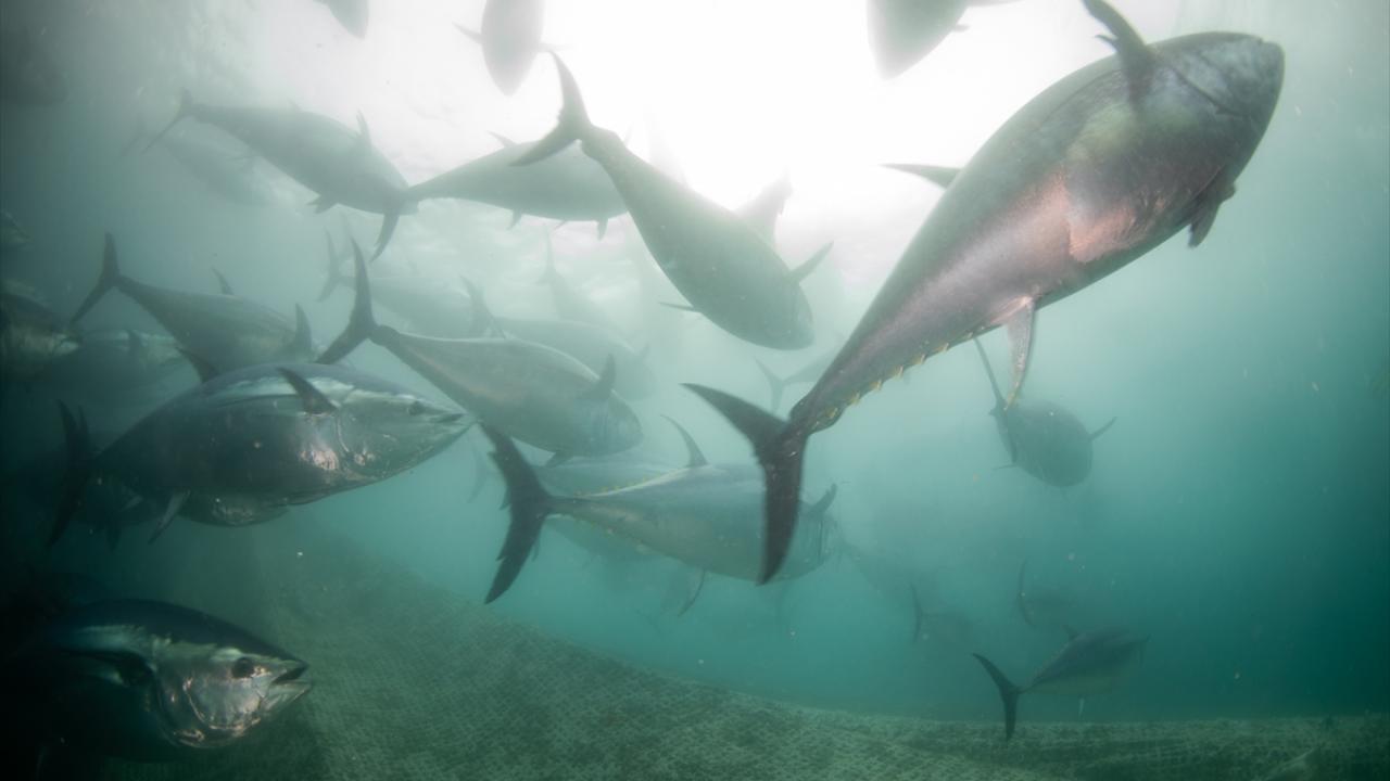 Atlantik Ton Balıklarının Korunması Uluslararası Komisyonu`nun (ICCAT) verdiği ülke kotaları kapsamında mayıs ve haziranda Akdeniz açıklarında avlanan mavi yüzgeçli orkinoslar, İzmir`deki çiftliklerde beslenerek büyütülüyor.