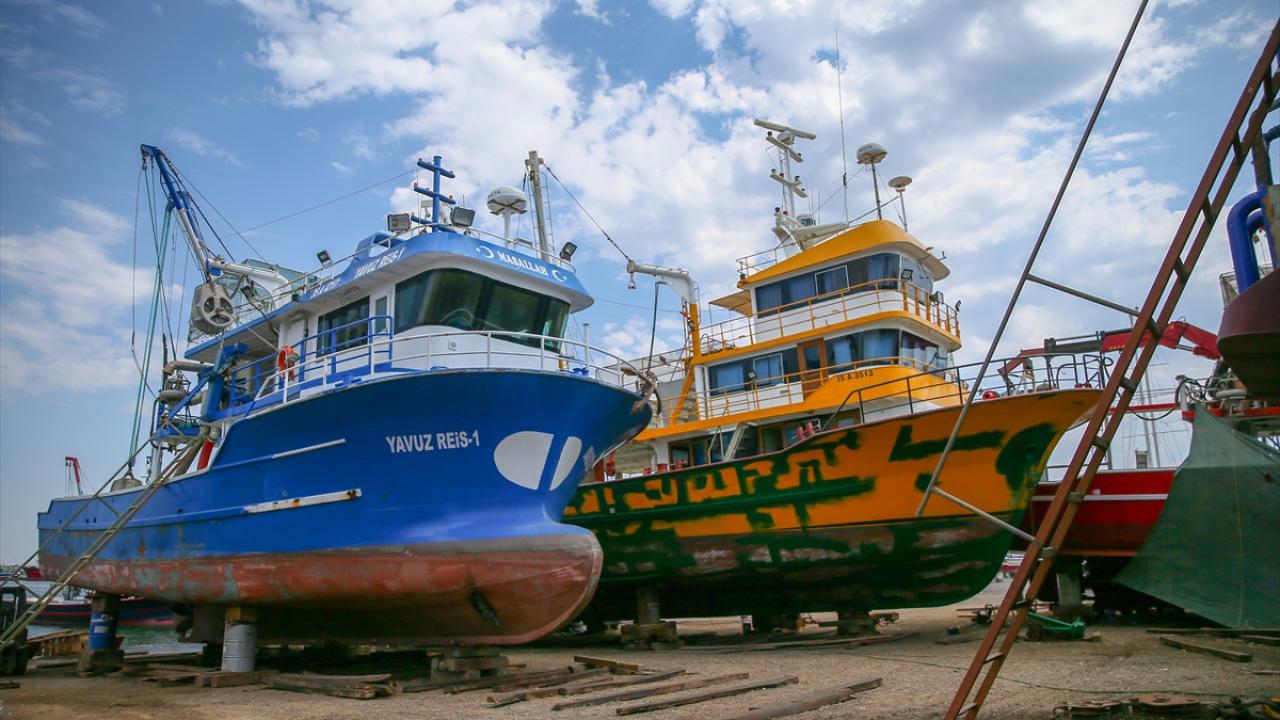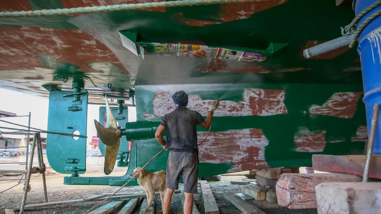 Uzun süre denizde kalacak teknelerin motor bakımlarında sona gelinirken boyama işlemleri de devam ediyor.