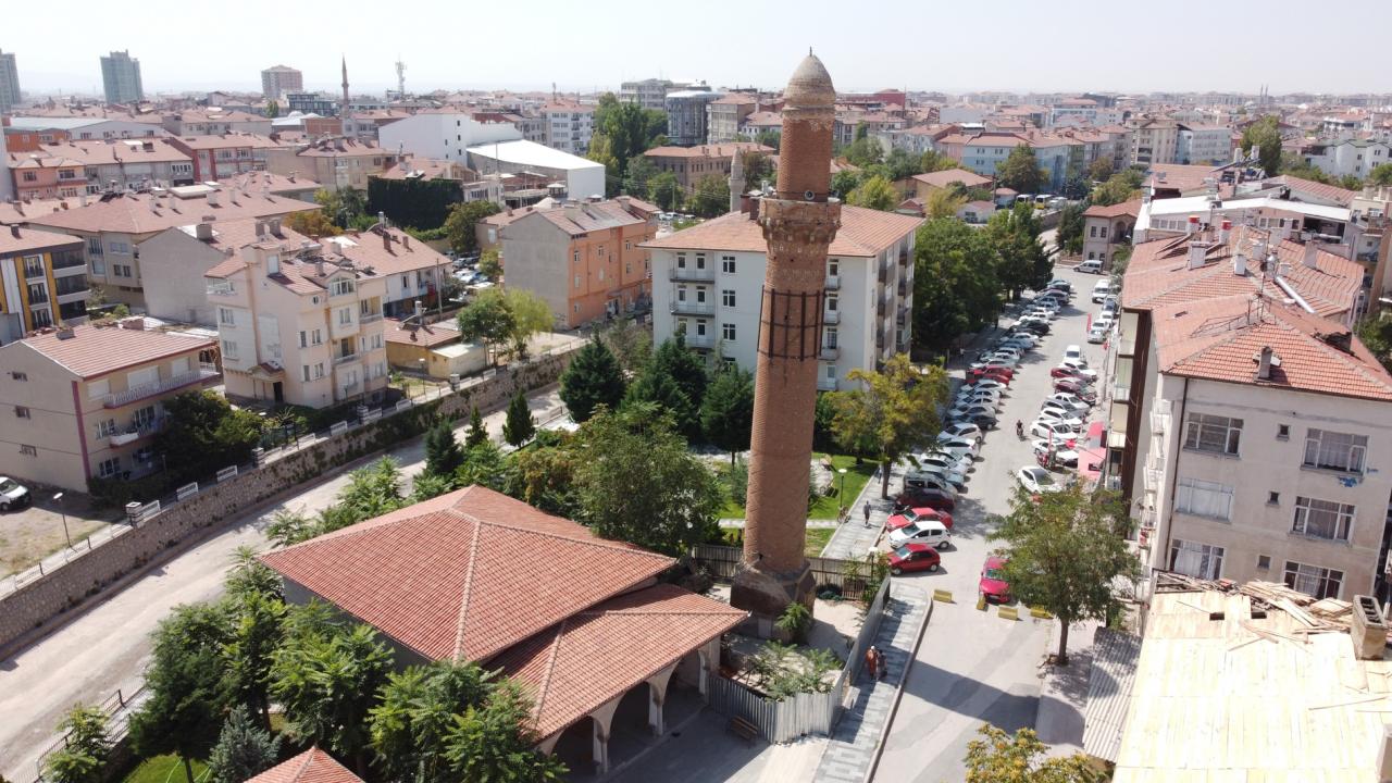 Minarenin Selçuklu Sultanı Alaeddin Keykubad döneminde, babası Gıyaseddin Keyhüsrev tarafından 1220-1237`de yapıldığının rivayet edildiğini belirten İl Müftüsü Hasan Hüseyin Güller, “Ancak esere ait kitabe günümüze kadar ulaşmış değildir. Cami değişik zamanlarda pek çok kez tadilat görmüş ve şu an tadilat işleri Konya Vakıflar Bölge Müdürlüğü tarafından yürütülmektedir. Minarenin yapılıştan mı yoksa daha sonradan mı eğrildiği konusu hep merak ve tartışma konusu olmuştur. Ancak yaygın olan kanaat şudur ki minare ilk yapılışta eğri olarak yapılmış çünkü yanı başında bulunan ırmağın ters istikametine yapılmış. Olası bir toprak kayması ve olumsuz etkilerden etkilenmemesi için 1973 yılında da çelik halatlarla bağlanmak suretiyle herhangi bir tehlikenin ortaya çıkması önlenmiştir” diye konuştu.