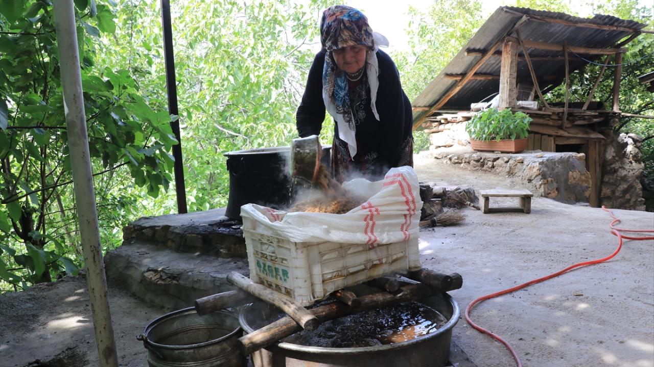 Pekmez yapan 84 yaşındaki Aysel Yalçıner de dutun pekmeze dönüşümünün meşakkatli olduğunu dile getirdi.