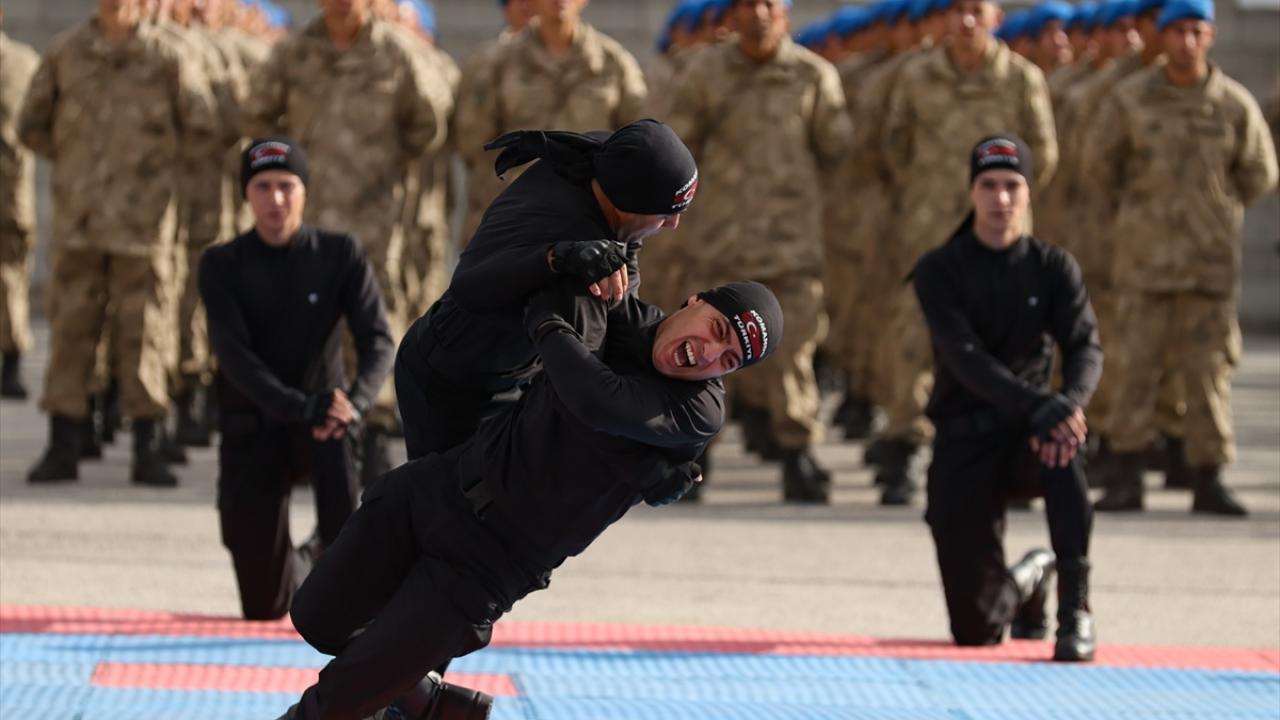 Komandolar tarafından silahlı hareketler, yakın dövüş ve dağcılık gösterilerinin sunulduğu tören, uğurlama duasının yapılması ve komando uzman erbaşların geçişiyle sona erdi.