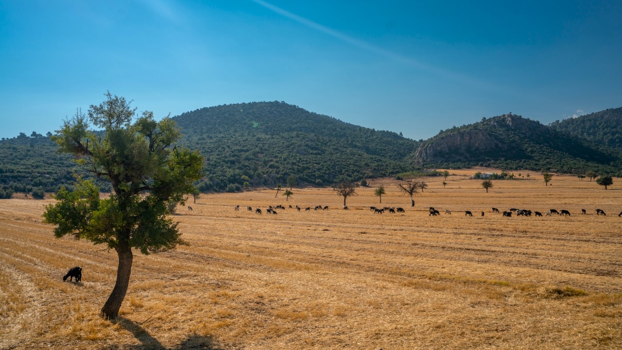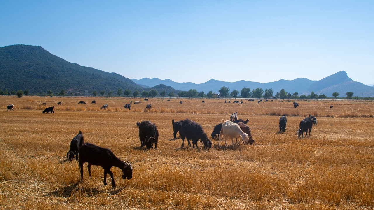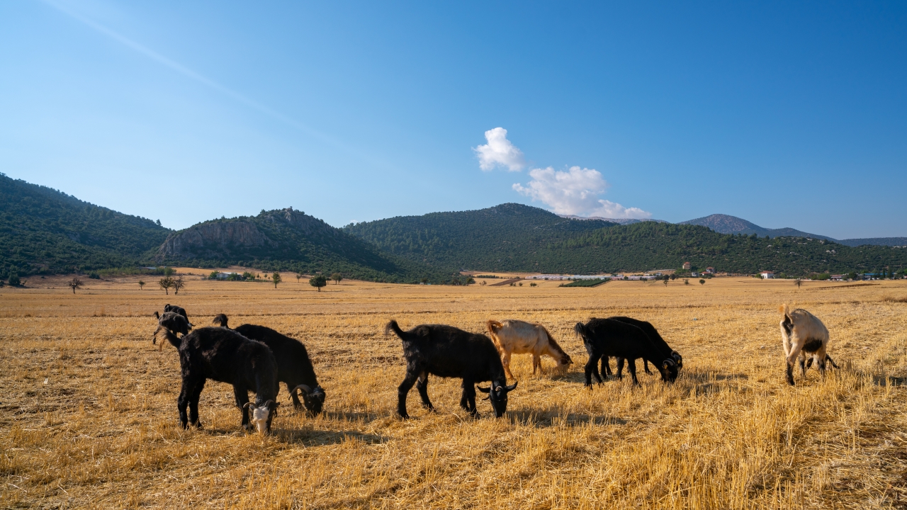 Yaz boyu tarlaları süsleyen başakların yerini keçi sürüleri aldı.