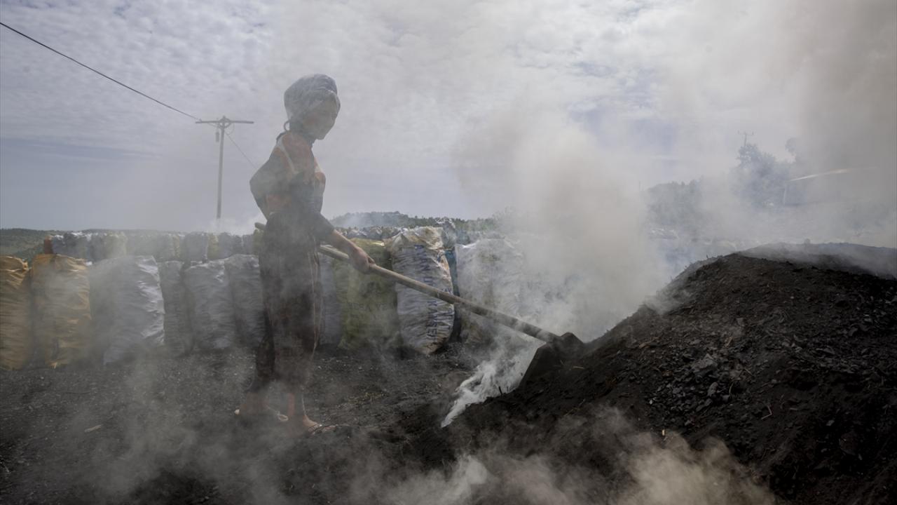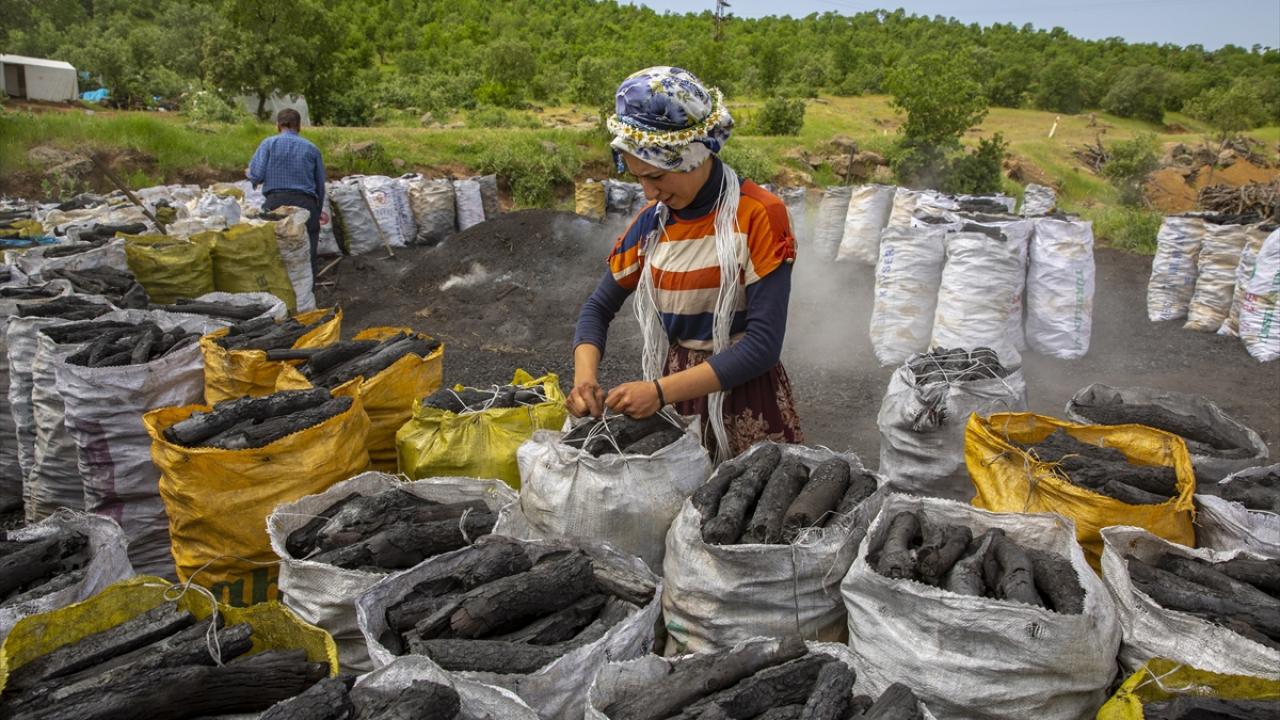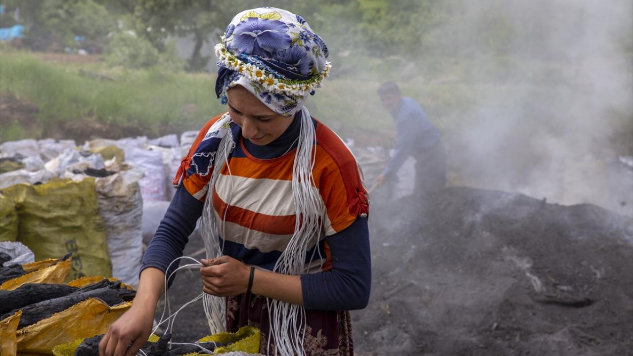 Mardin`den gelerek Diyarbakır`ın Çermik ilçesinde Orman İşletme Müdürlüğünce belirlenen bölgelerde kurdukları çadırlarda aileleriyle birlikte kalan kömür işçileri, mesaiye günün ilk ışıklarıyla başlıyor.