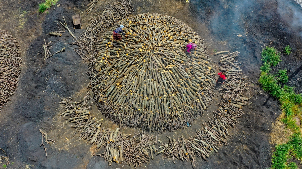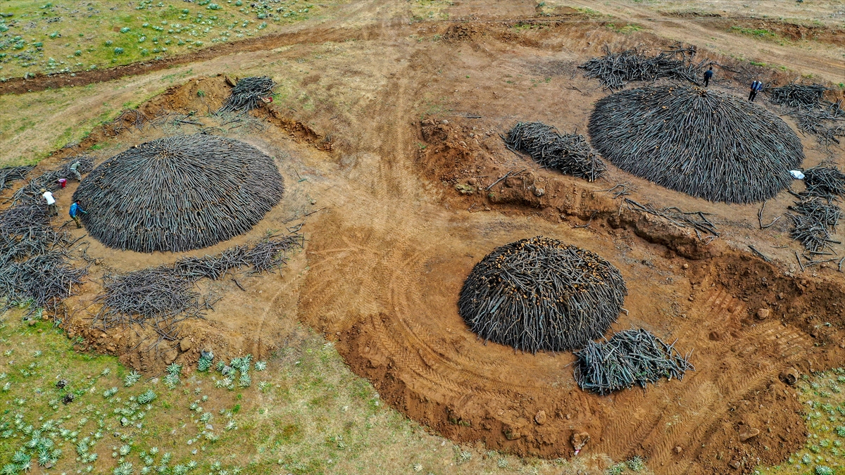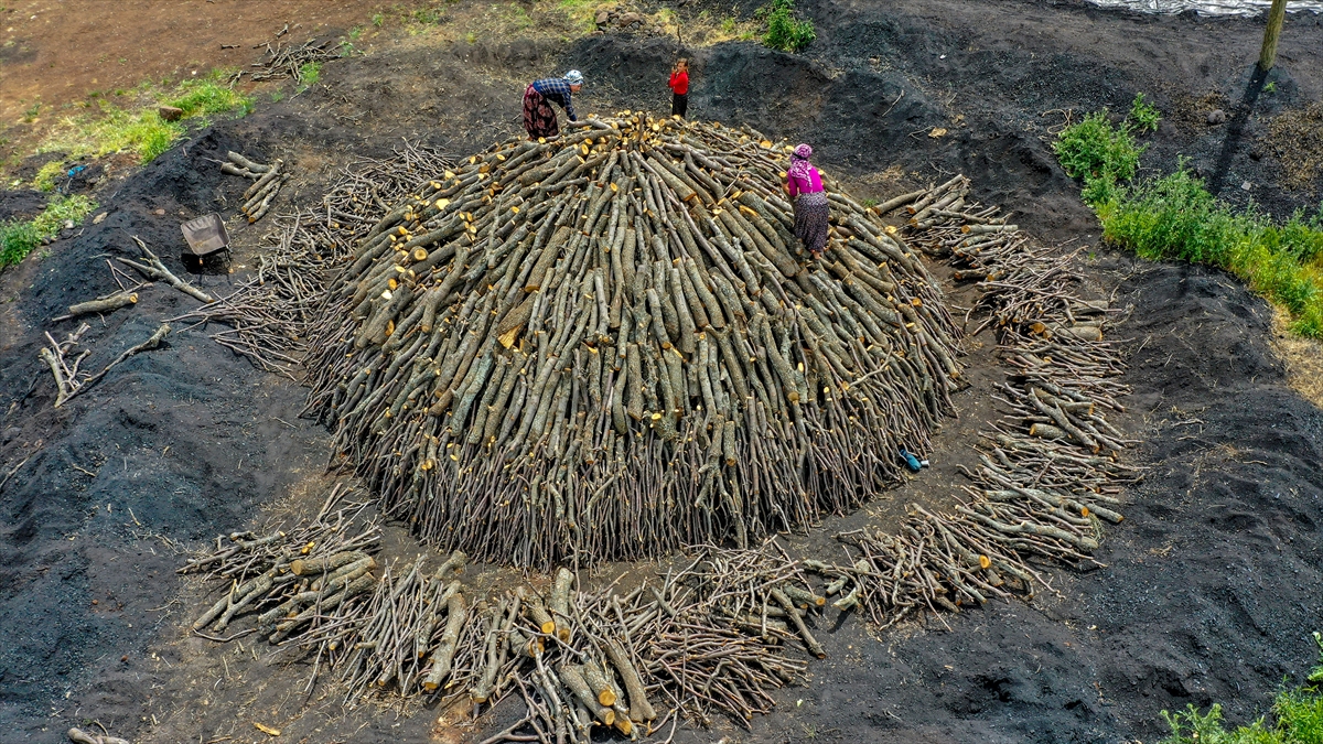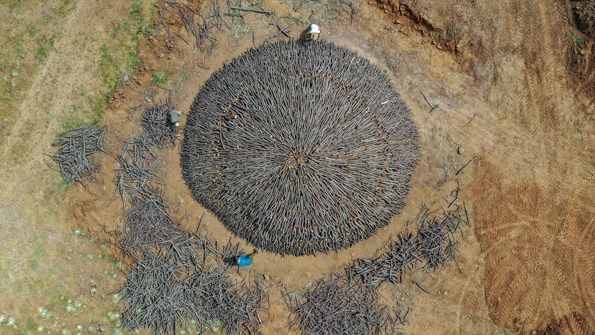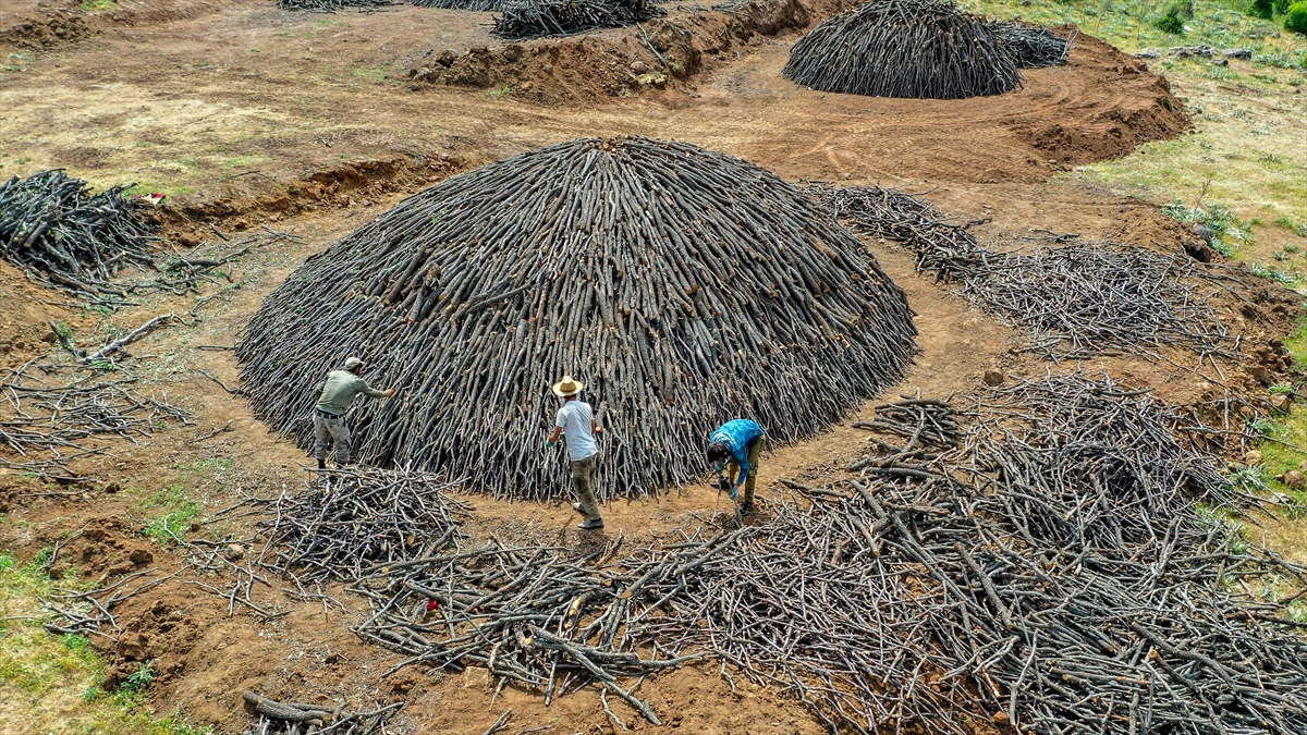 Yalancı, sabah erken saatlerden itibaren arazide çalışma yürüttüklerini, kesilen ve istiflenerek üzeri saman ve toprakla kapatılan odunları yakmaya başladıklarını belirterek, kül olmaması için de yaklaşık 15 gün başında geceli gündüzlü nöbet tuttuklarını aktardı.