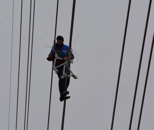 Dünyanın en zor işleri arasında gösterilen "yüksek gerilim hatlarının bakım onarımı"nda çalışan işçiler, ekmeklerine 80-100 metre yükseklikteki tellerde ulaşıyor. Çanakkale'nin Lapseki ilçesi sınırları içerisinden geçen yüksek gerilim hattında görev yapan işçiler, metrelerce yükseklikteki tellerde yaptıkları çalışmayla akrobatlara taş çıkarıyor. Çoğu kişinin bakmaya bile korkacağı yükseklikte çalışan işçiler, tellerin üzerinde zaman zaman 6 saat vakit geçiriyor.