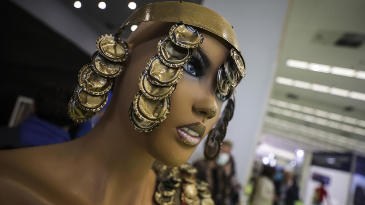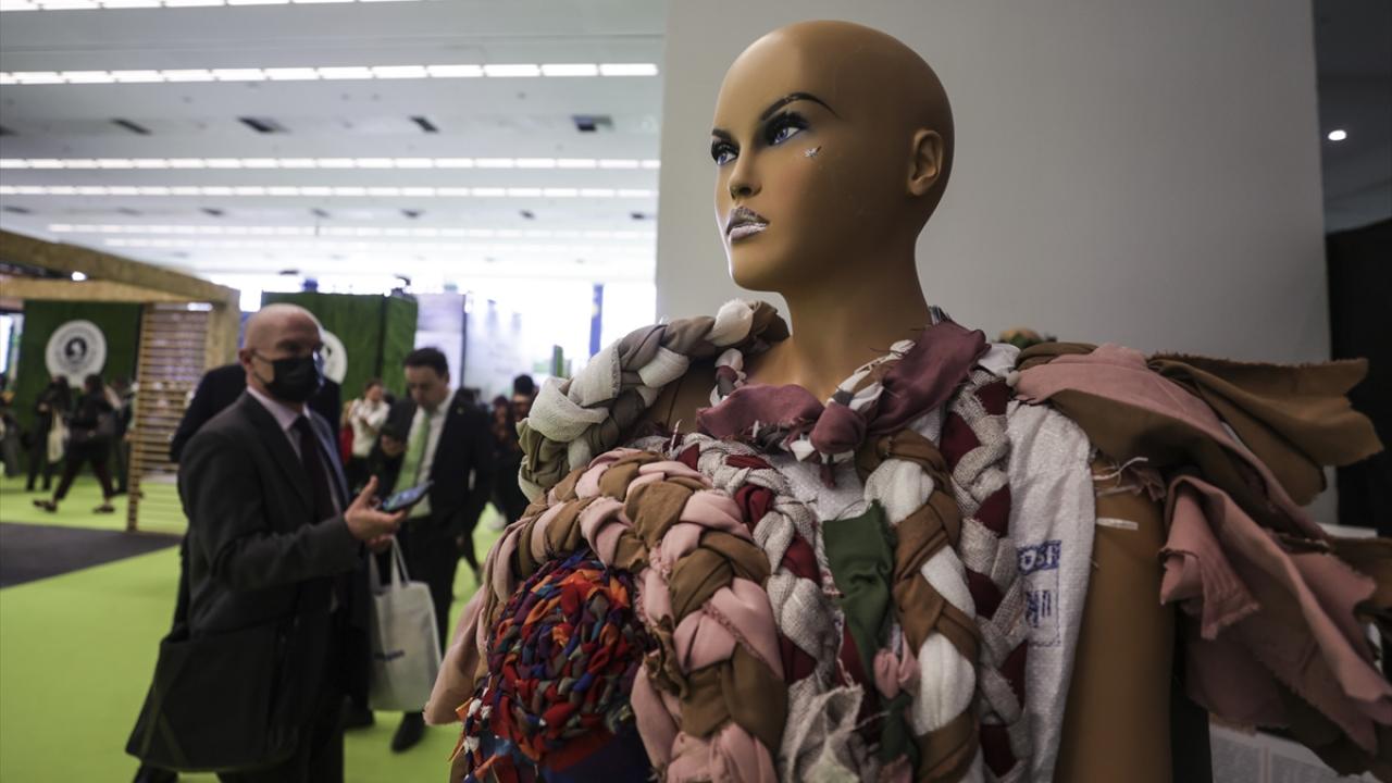 Fuarda çevre bilinci oluşturmak için, bitkiler ile yapılmış kıyafet giyen kadın dikkat çekti.