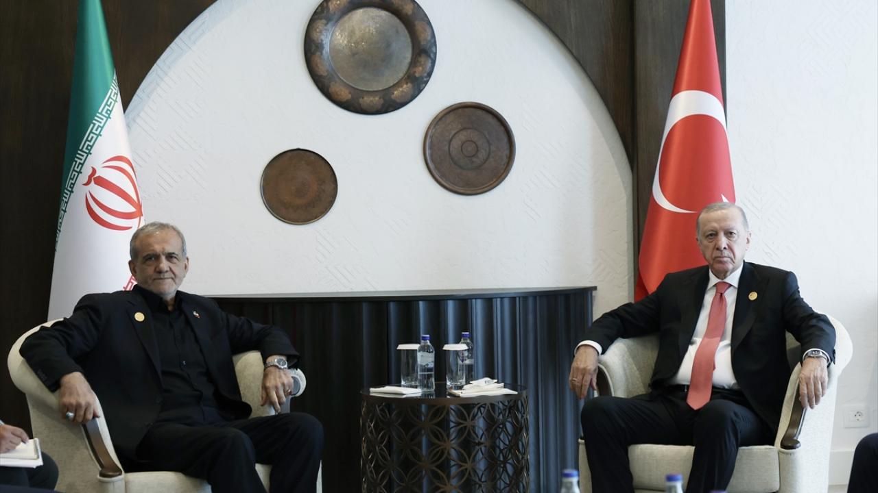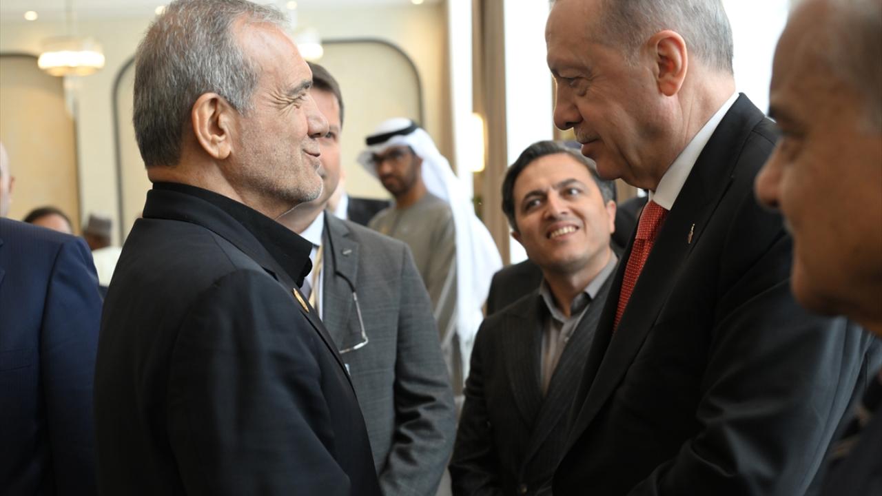 Cumhurbaşkanı Erdoğan, programa katılan İran Cumhurbaşkanı Mesud Pezeşkiyan ile selamlaştı.