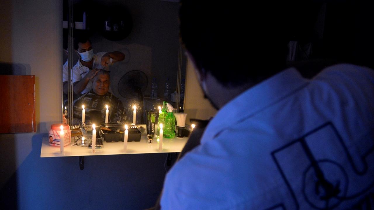 Başkentteki esnaflar, elektrik kesintiler nedeniyle mum gibi aydınlatıcılar kullandı.