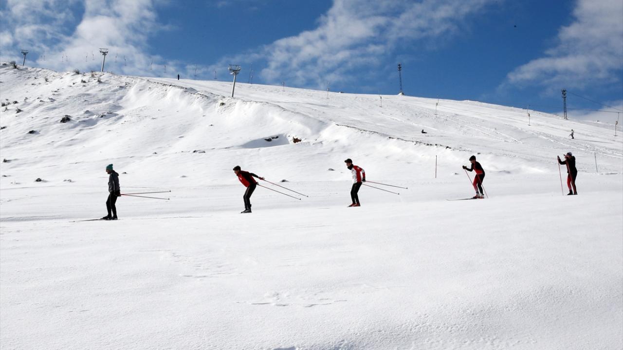Kayaklı Koşu Milli Takım Antrenörü Celal Apak`ın gözetiminde 1600 rakımlı bölgedeki 2,5 kilometrelik pistte çalışan sporcular, başarılı bir sezon geçirmek için çaba gösteriyor.