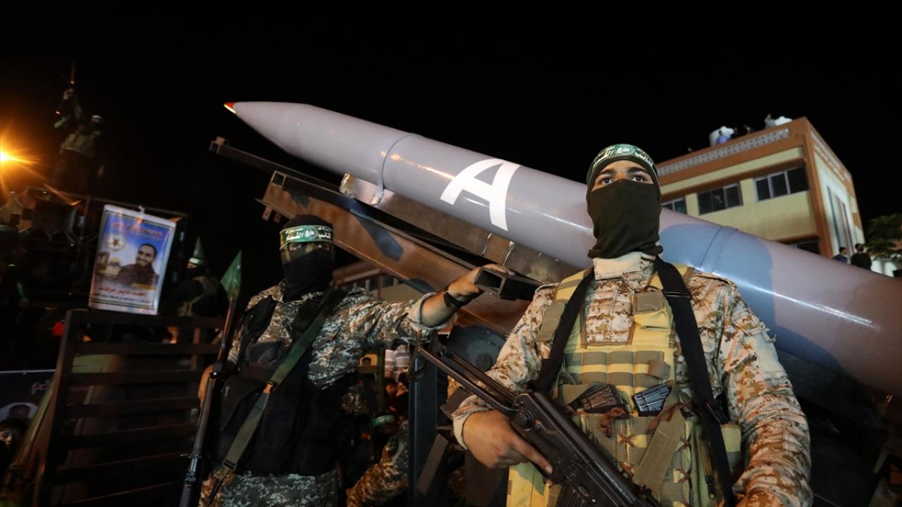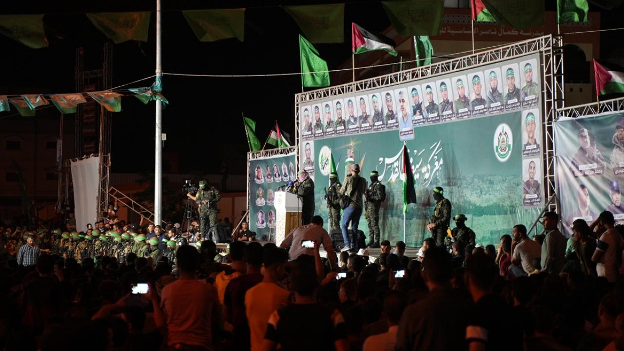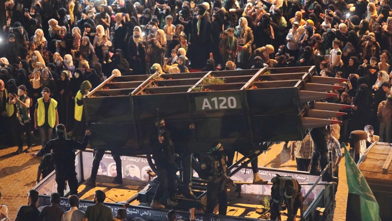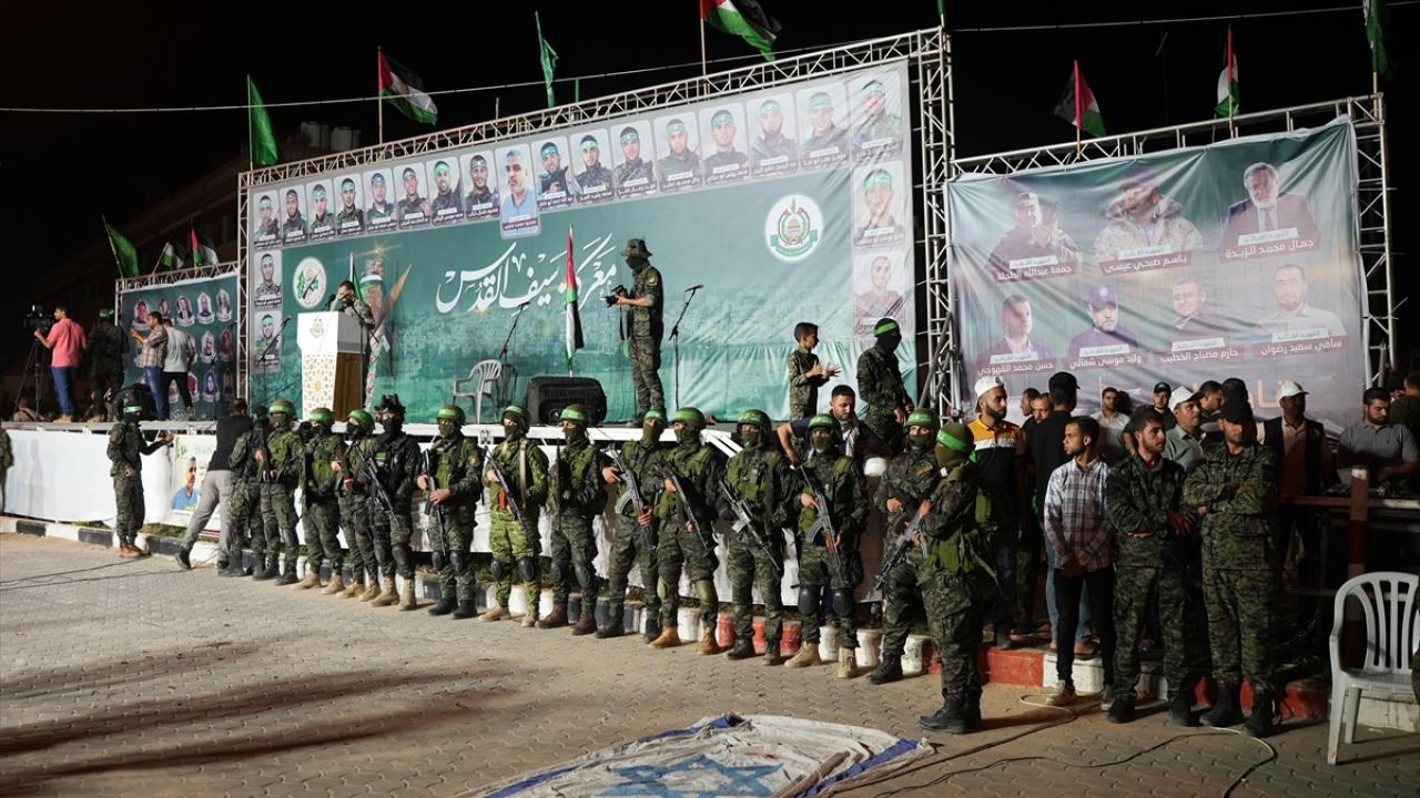 Törende, Kassam mensupları ağır makineli tüfekler ve keskin nişancı silahları taşıdı. İsrail kentlerini bombalamada kullanılan roketleri taşıyan kamyonlar da törende yerini aldı.