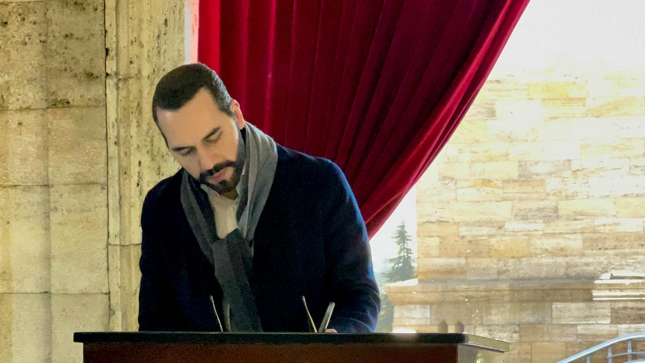 El Salvador Dışişleri Bakanı Alexandra Hill`in de eşlik ettiği Bukele, Anıtkabir Özel Defteri`ni imzaladı.