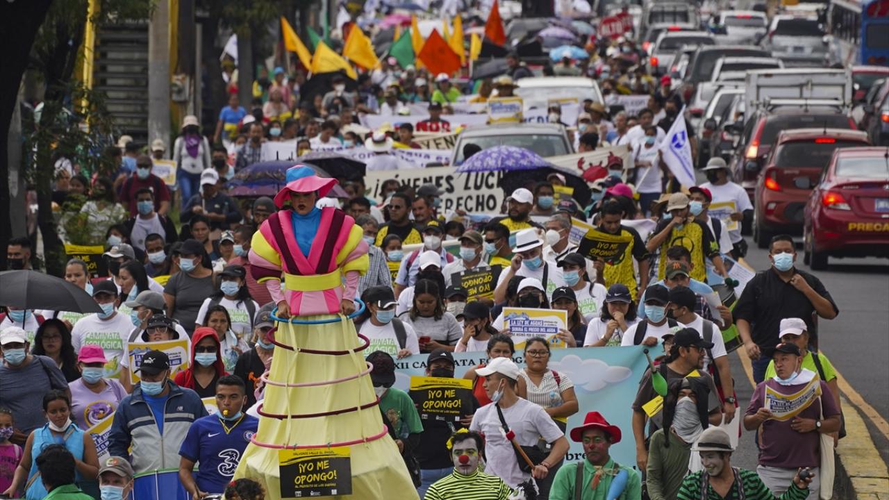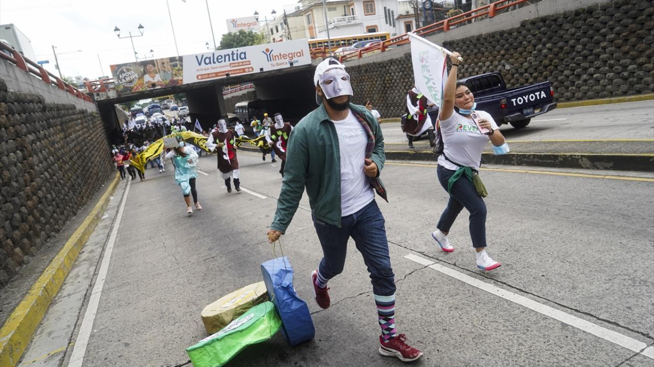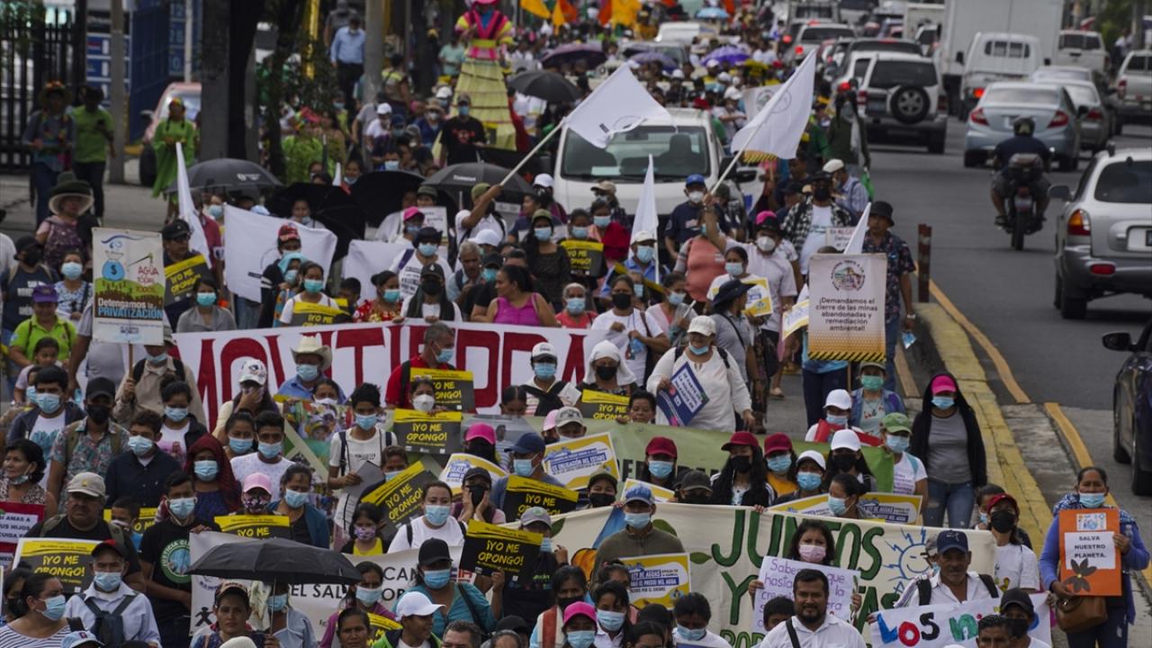 El Salvador'da Dünya Çevre Günü dolayısıyla başkent San Salvador'da bir araya gelen göstericiler, Devlet Başkanlığı binasına yürüyüş düzenledi.