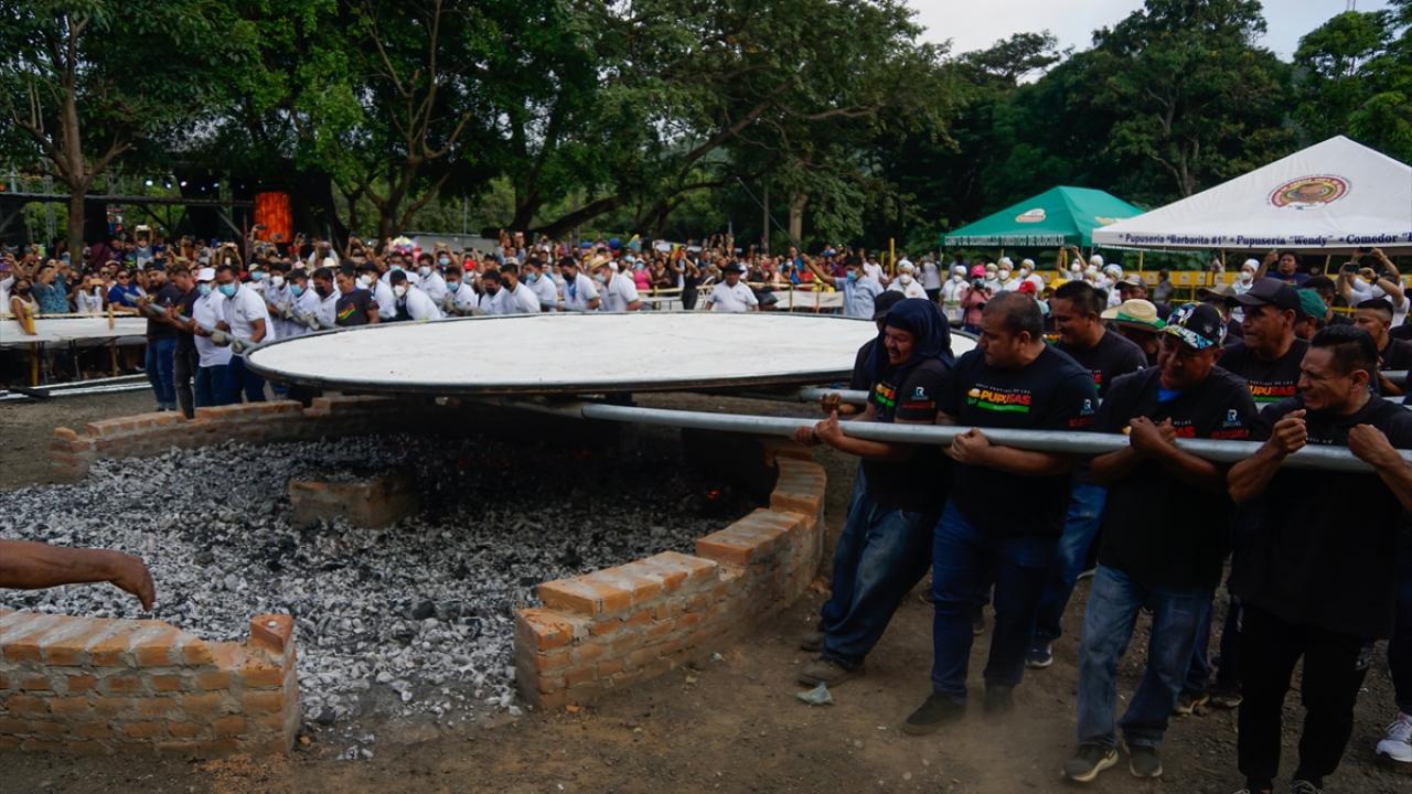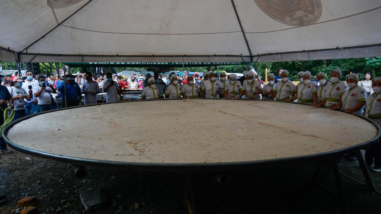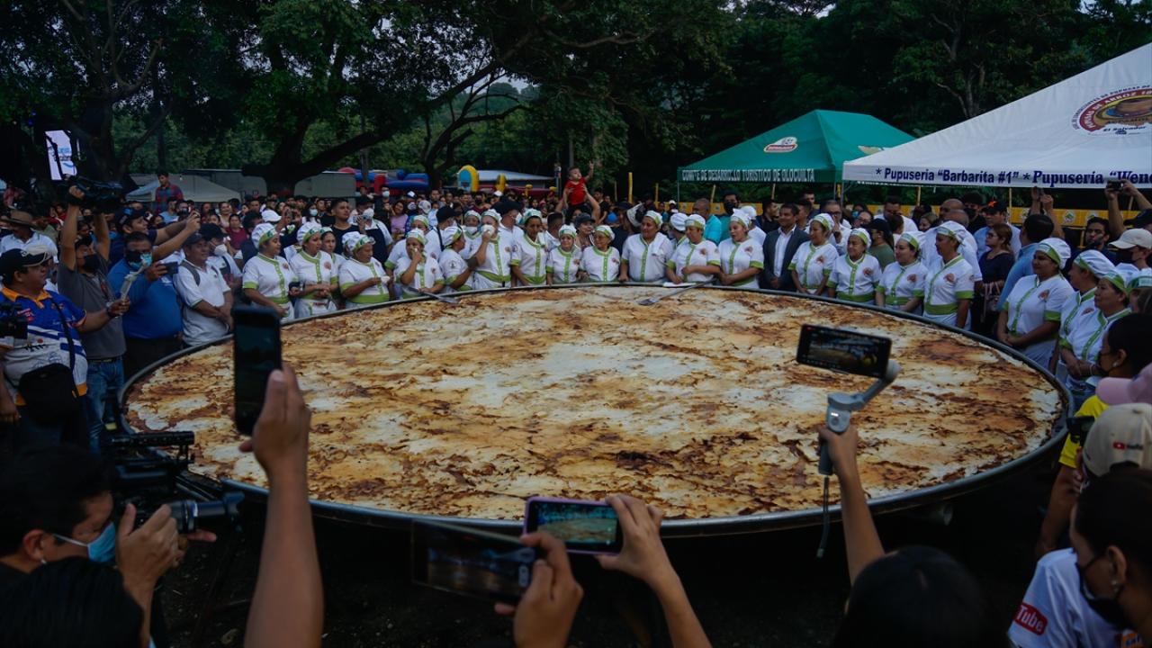 El Salvadorlular, el birliğiyle hazırladıkları milli yemekleri `pupusa`nın boyutlarını büyüterek 5,5 metre çapındaki hamur işini sac plaka üzerine koyup odun ateşinde pişirdi.