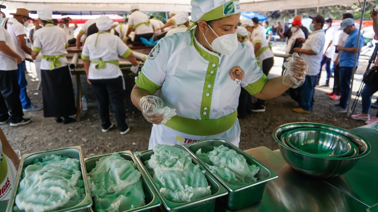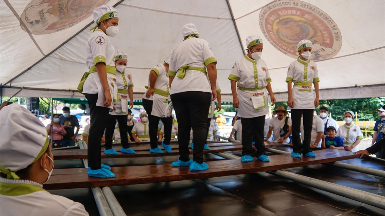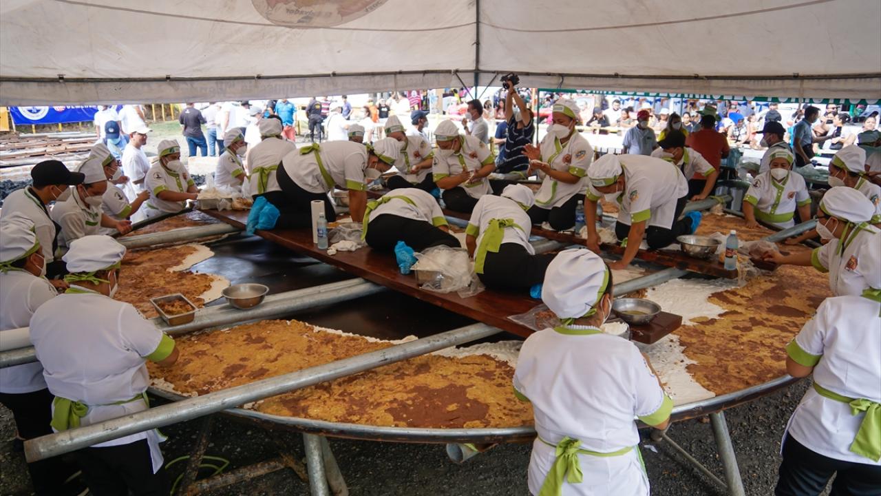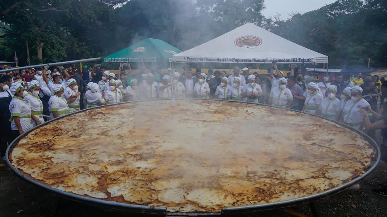 El Salvadorlular, el birliğiyle hazırladıkları milli yemekleri `pupusa`nın boyutlarını büyüterek 5,5 metre çapındaki hamur işini sac plaka üzerine koyup odun ateşinde pişirdi.