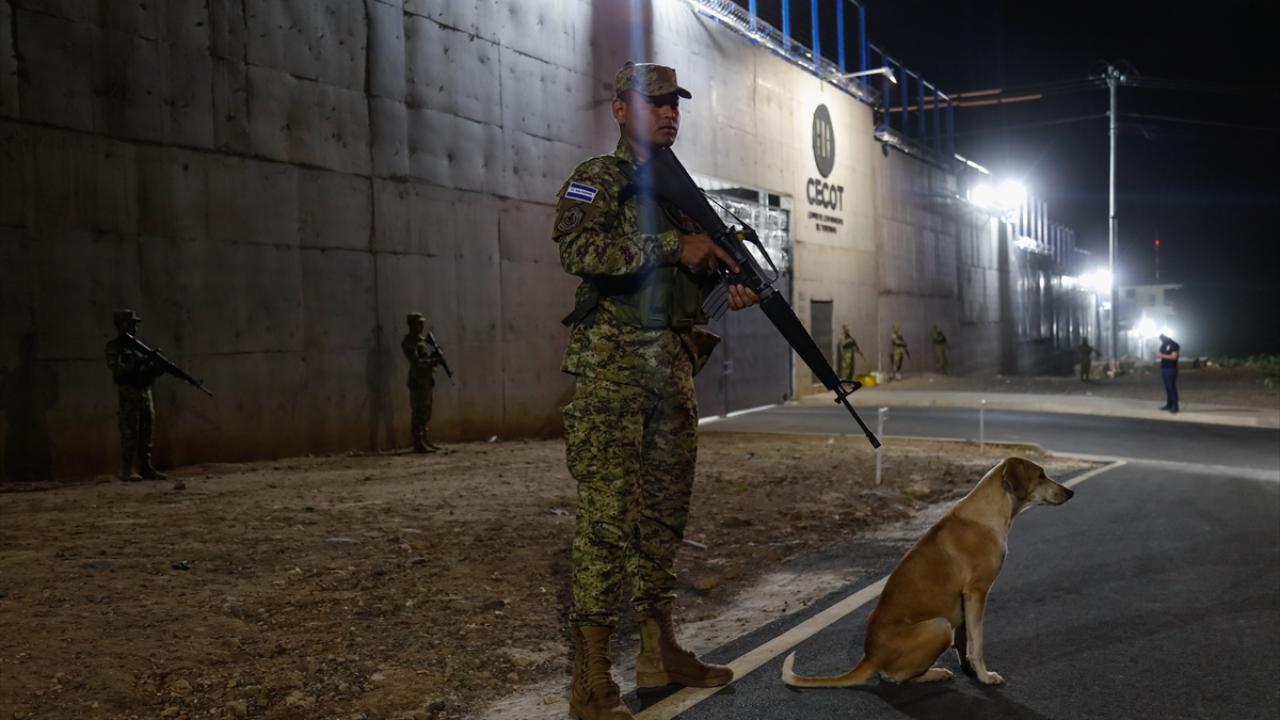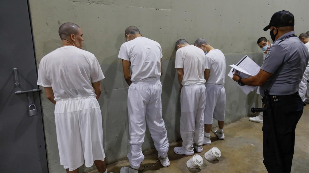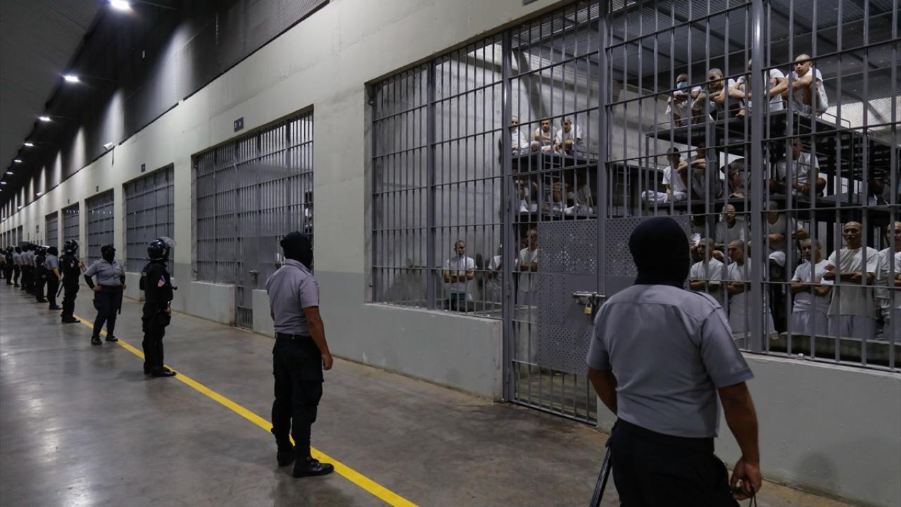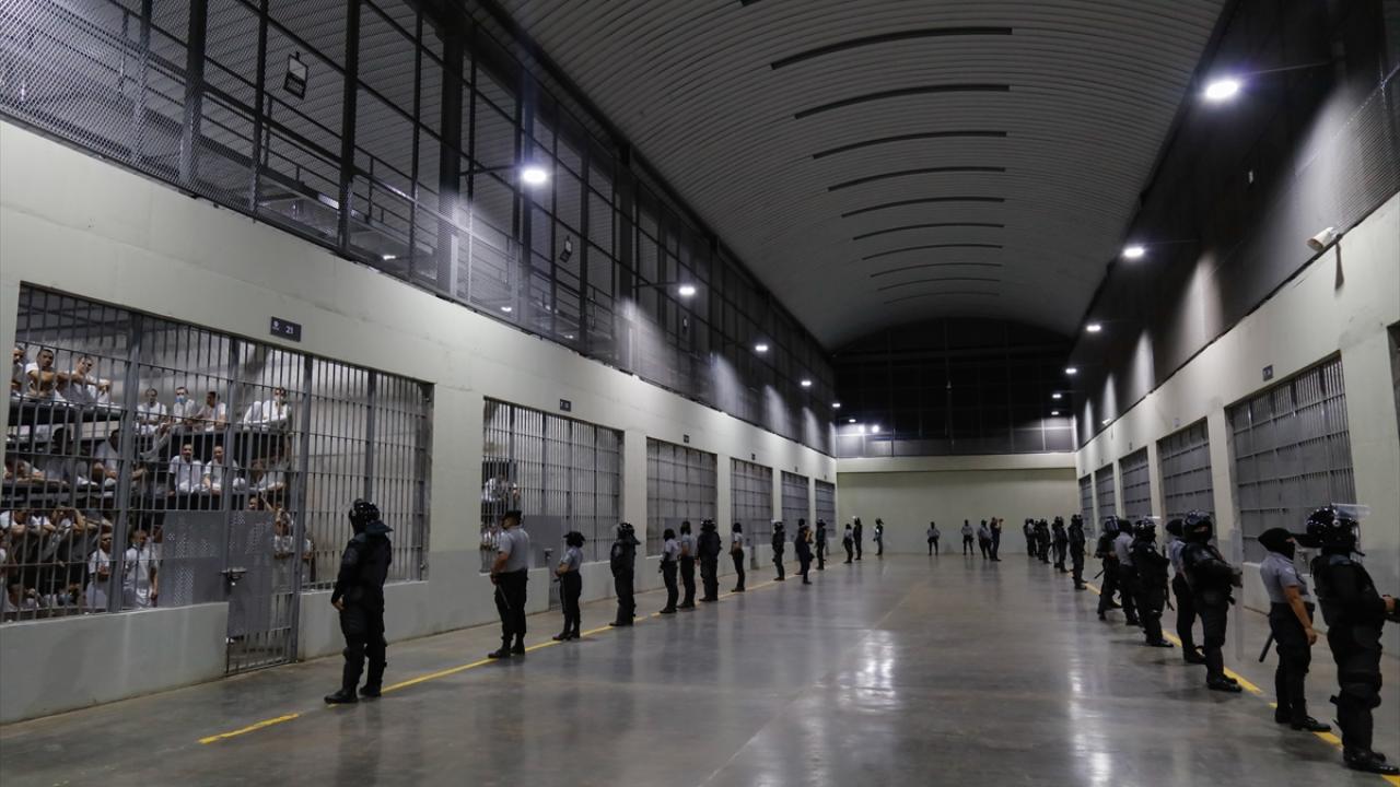 El Salvador'un San Vicente kentinde bulunan Devlet Başkanı Nayib Bukele'nin güvenlik planının bir parçası olarak açılan Latin Amerika'nın en büyük hapishanesi konumundaki 40 bin kapasiteli CECOT hapishanesi görüntülendi.
