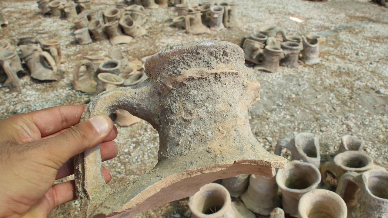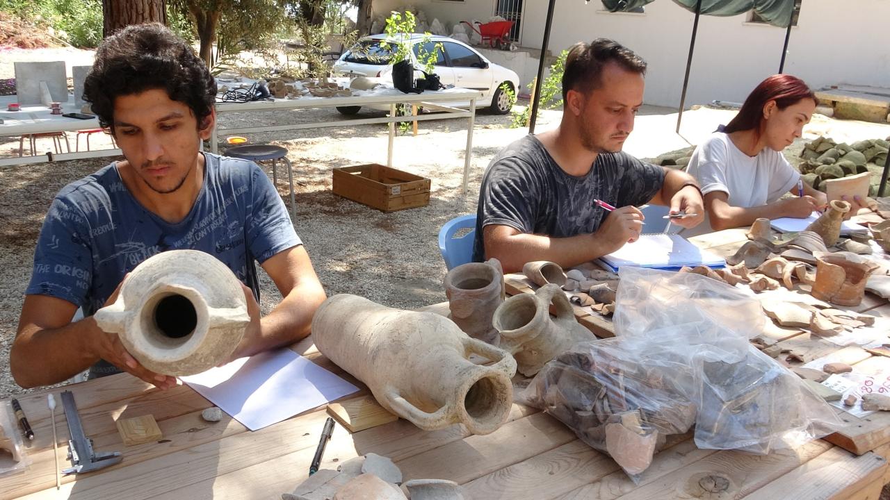 Ekip, antik dönemlere özgü çömlek olarak tanımlanan amforalar üzerine yaptıkları çalışmalarda elde edilen buluntuların çizim, tasnif, tanımlama ve fotoğraflama işlemlerini yürütüyor.