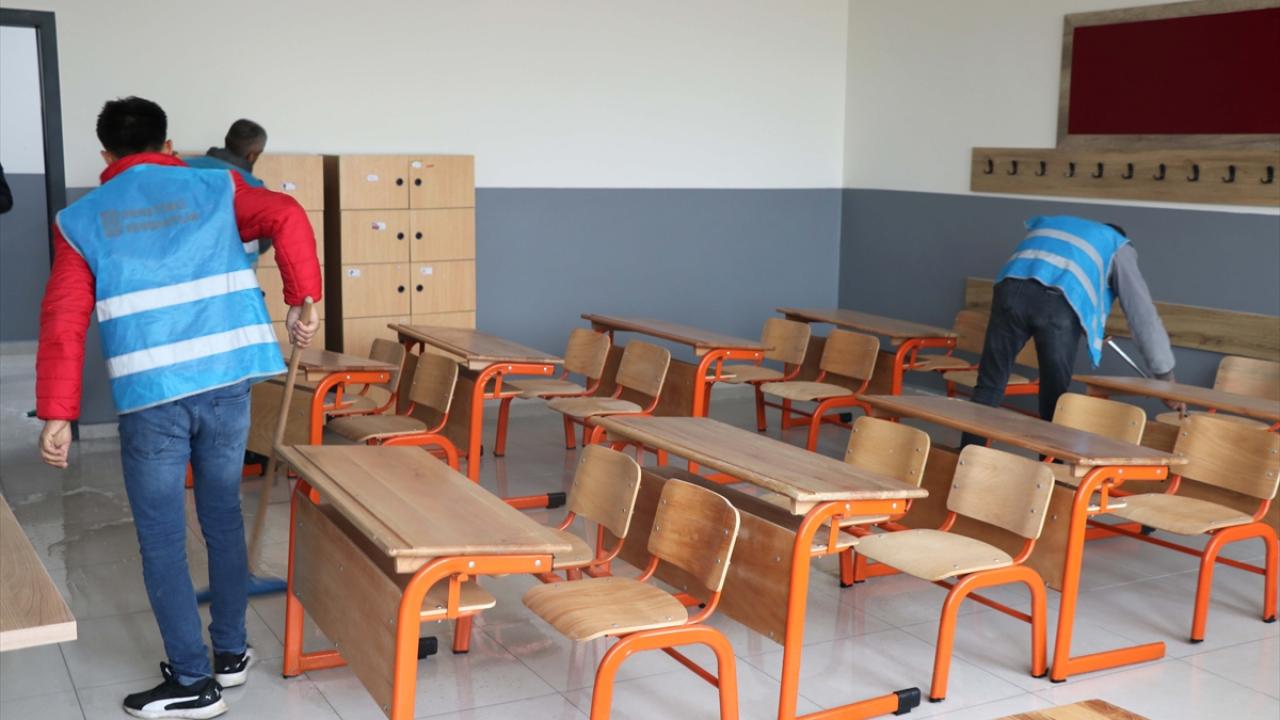 Denetimli serbestlik hükmünden yararlanan 50 hükümlünün, çevre düzenlemesi ile iç ve dış temizliğini yaptığı çalışmayla açılışa hazırlanan okullarda öğrencilere temiz bir ortam sağlanıyor.
