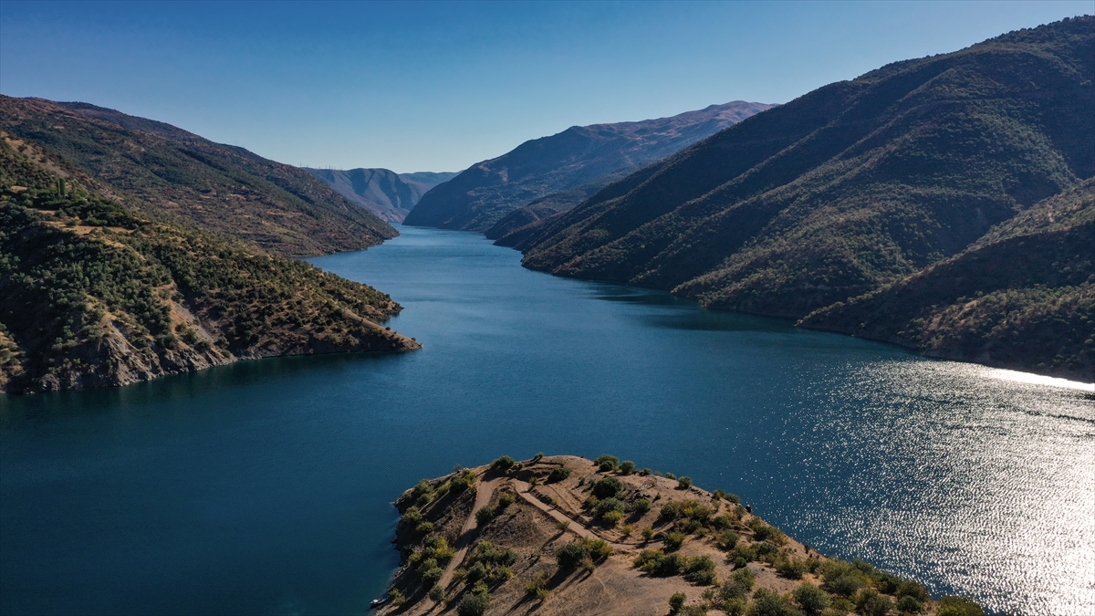 Atatürk Barajı`ndan sonra Türkiye`nin ikinci büyük barajı olan Karakaya Barajı`nın yapımıyla oluşan gölün Elazığ`ın Sivrice ilçesine bağlı Dikmen köyü mevkisindeki manzarası, görenlerin ilgisini çekiyor.