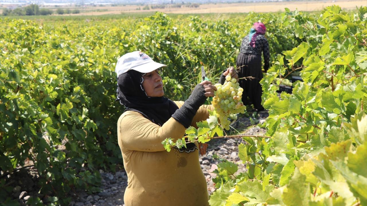 Bağ bozumunun başlamasıyla gelen siparişleri yetiştirmeye çalışan üreticiler, bağlarda çalışan mevsimlik işçilerle erken saatlerde ürünlerin hasadına başlıyor.